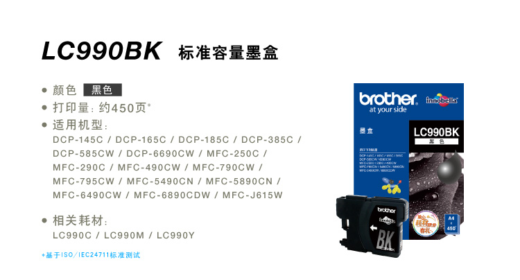 商品名称:兄弟(brother) LC990BK 黑色墨盒