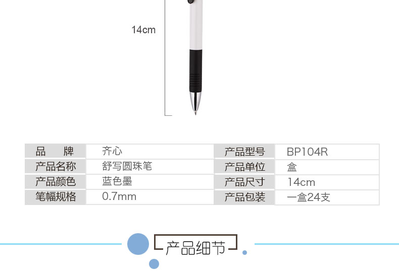 商品名称:齐心(Comix)BP104R 舒顺圆珠笔0.7mm颜色随机 办公文具(240支/箱)