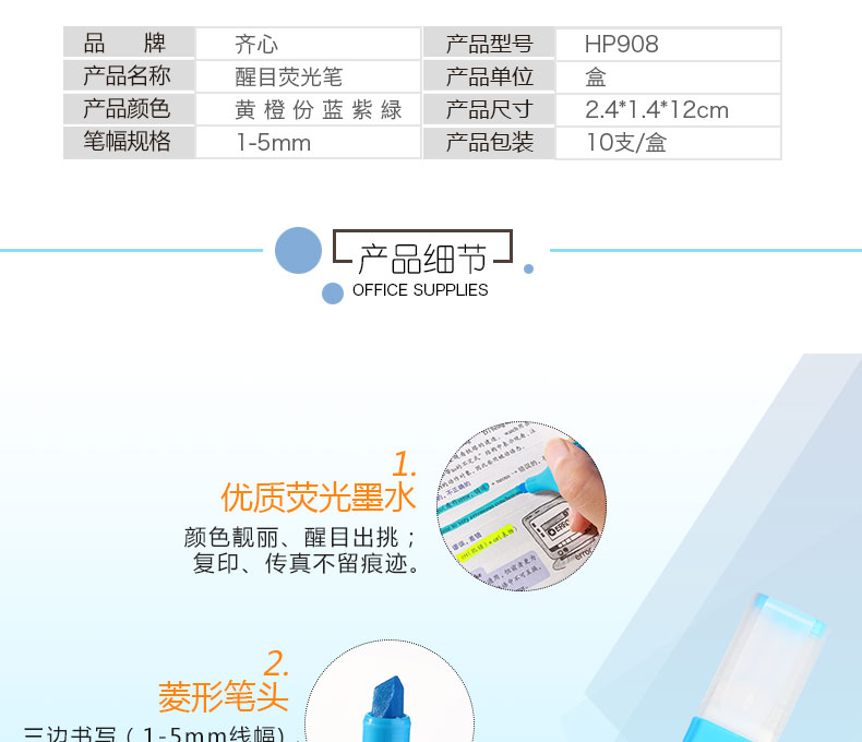 商品名称:齐心(COMIX)HP908 醒目荧光笔5.0mm 紫(60支/箱)