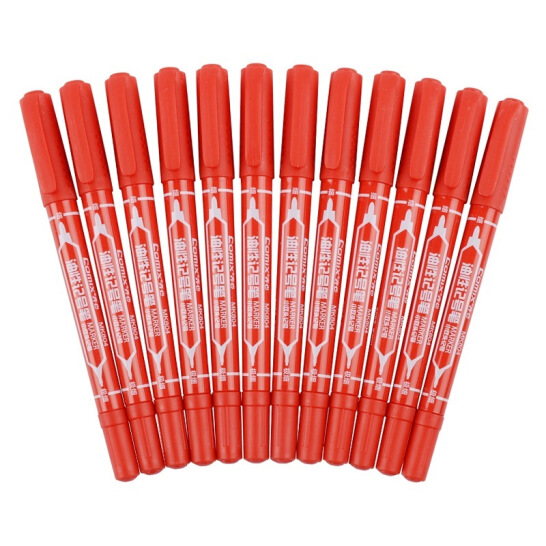 齐心(COMIX)MK804 记号笔0.5mm和2.0mm 小双头 红(144支/箱)