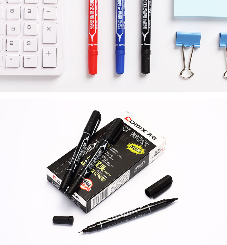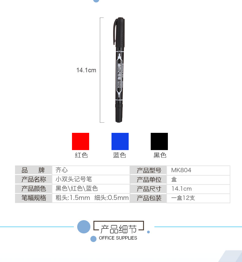 商品名称:齐心(COMIX)MK804 记号笔0.5mm和2.0mm 小双头 红(144支/箱)