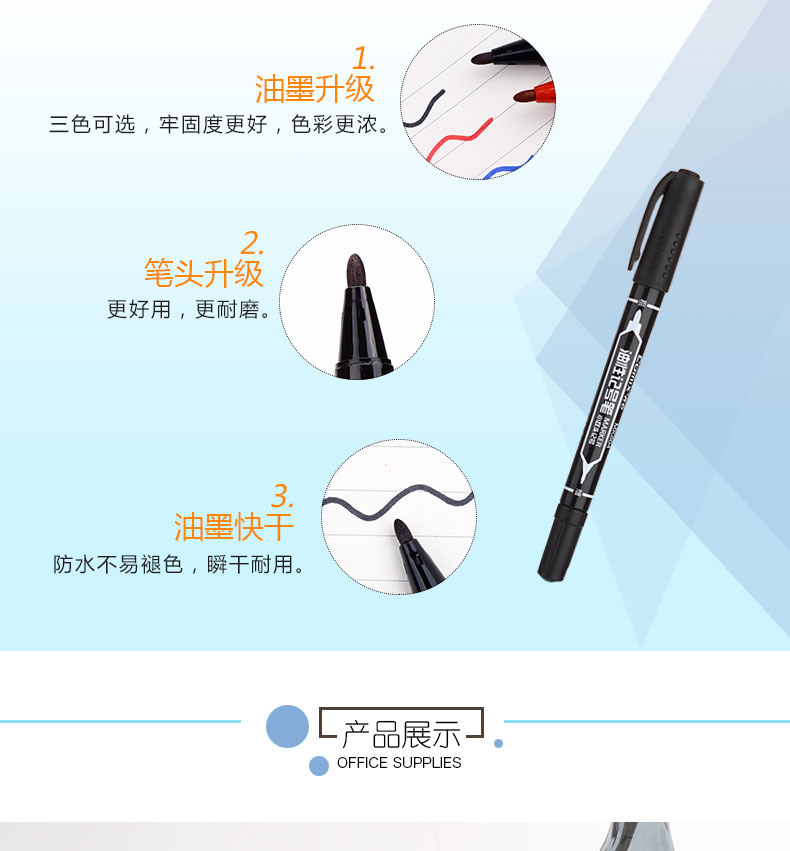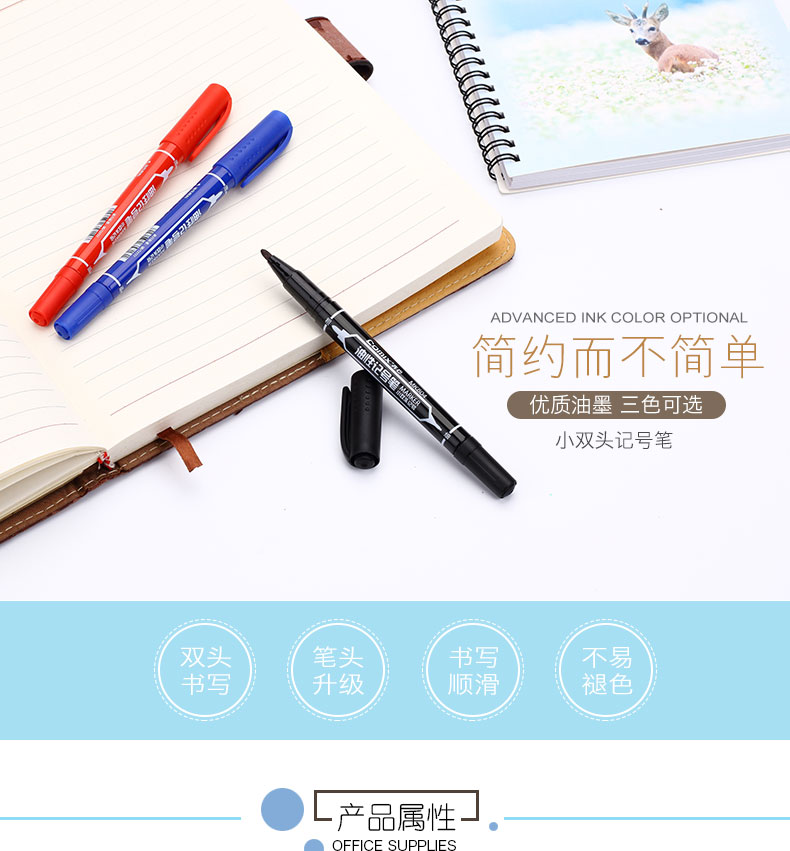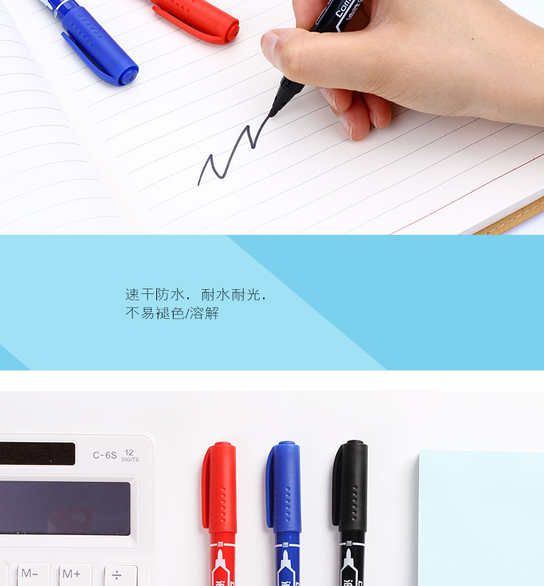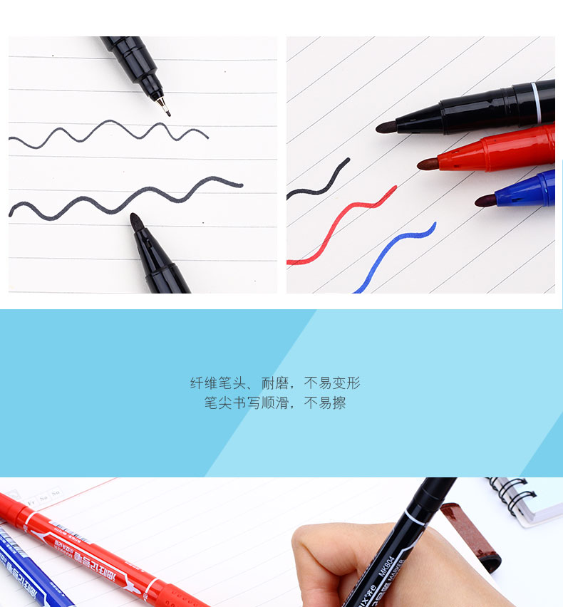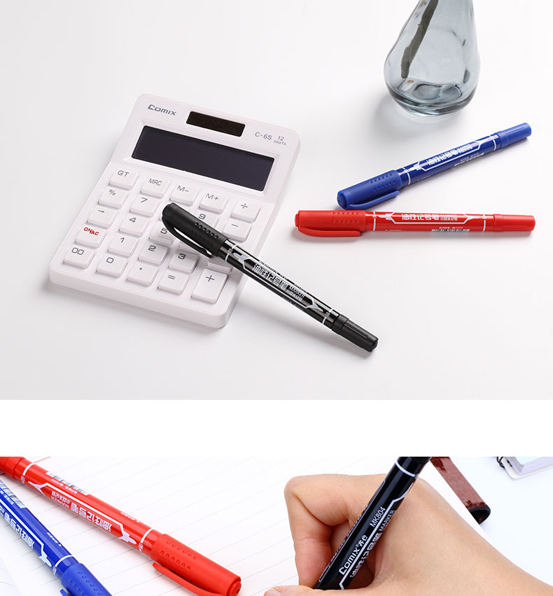 齐心(COMIX)MK803 记号笔2.0mm和6.0mm 大双头 蓝(120支/箱)