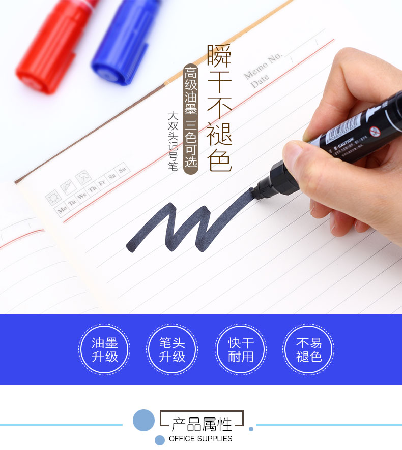 商品名称:齐心(COMIX)MK803 记号笔2.0mm和6.0mm 大双头 红(120支/箱)