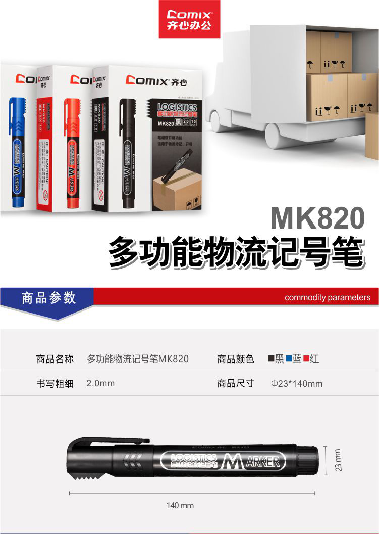 齐心(COMIX)MK820 多功能物流记号笔 2.0mm 蓝(120支/箱)
