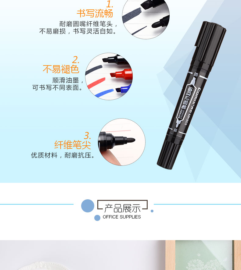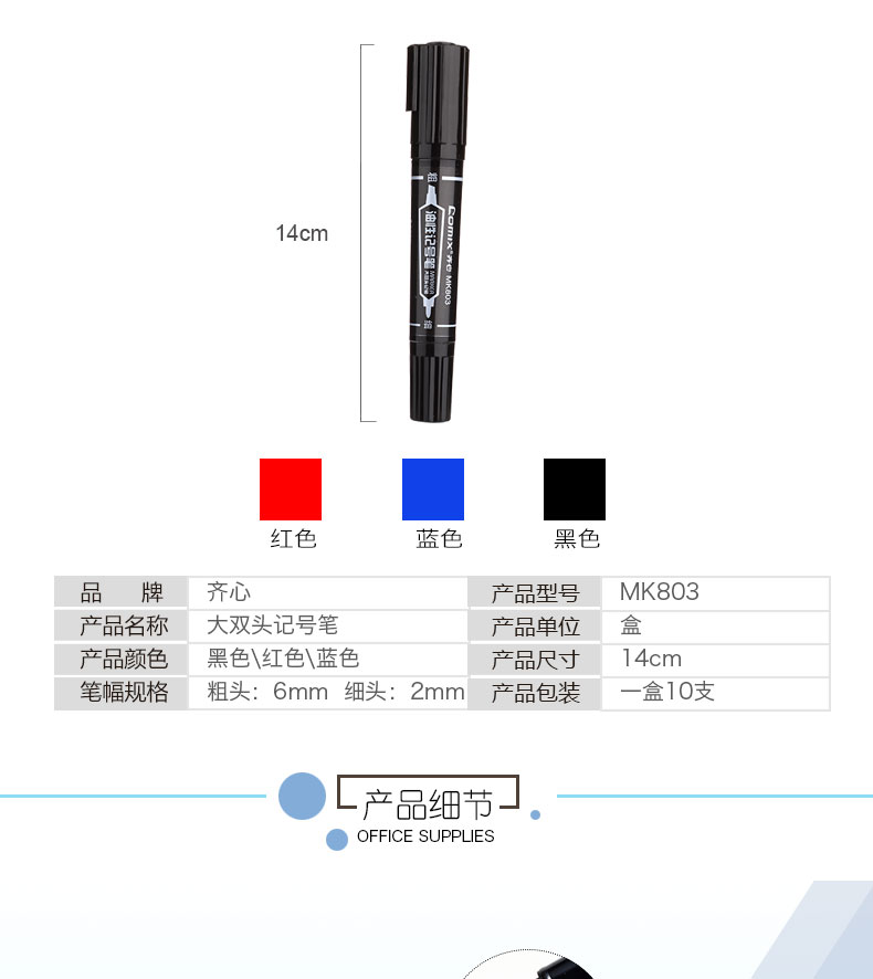 商品名称:齐心(Comix) MK803 记号笔2.0mm和6.0mm 大双头(120支/箱)