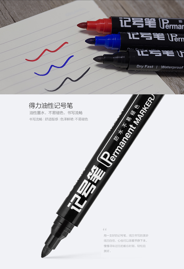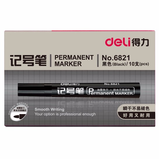 商品名称:得力(deli)黑色粗头物流油性记号笔大头笔 10支/盒6821