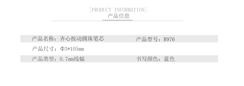 商品名称:齐心(COMIX)R976 按动圆珠笔替芯 0.7mm 10支每SET(50支/箱)