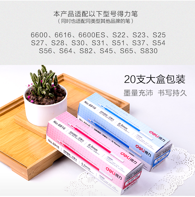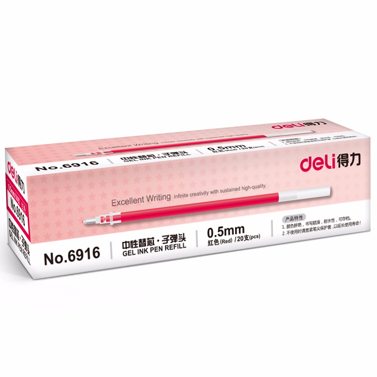 得力(deli)0.5mm红色笔芯 签字笔 子弹头替芯 20支/盒6916