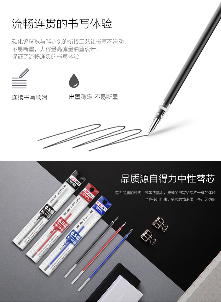 齐心(COMIX)K36 按动式中性笔0.5mm 匹配笔芯R929黑(144支/箱)