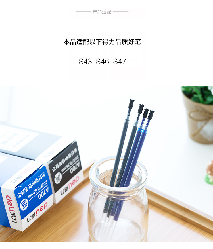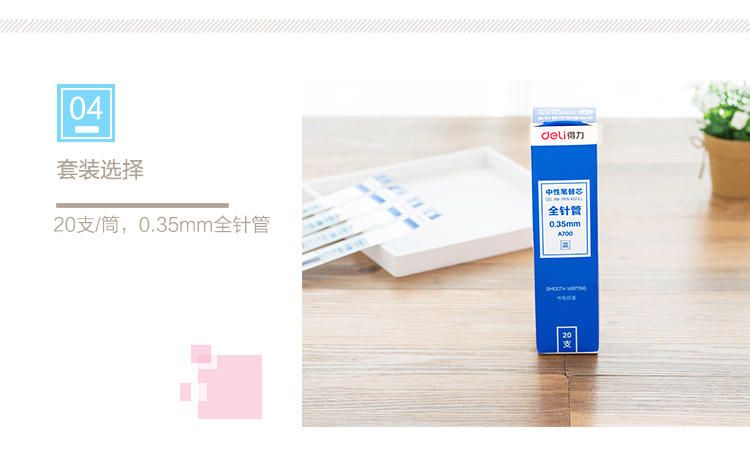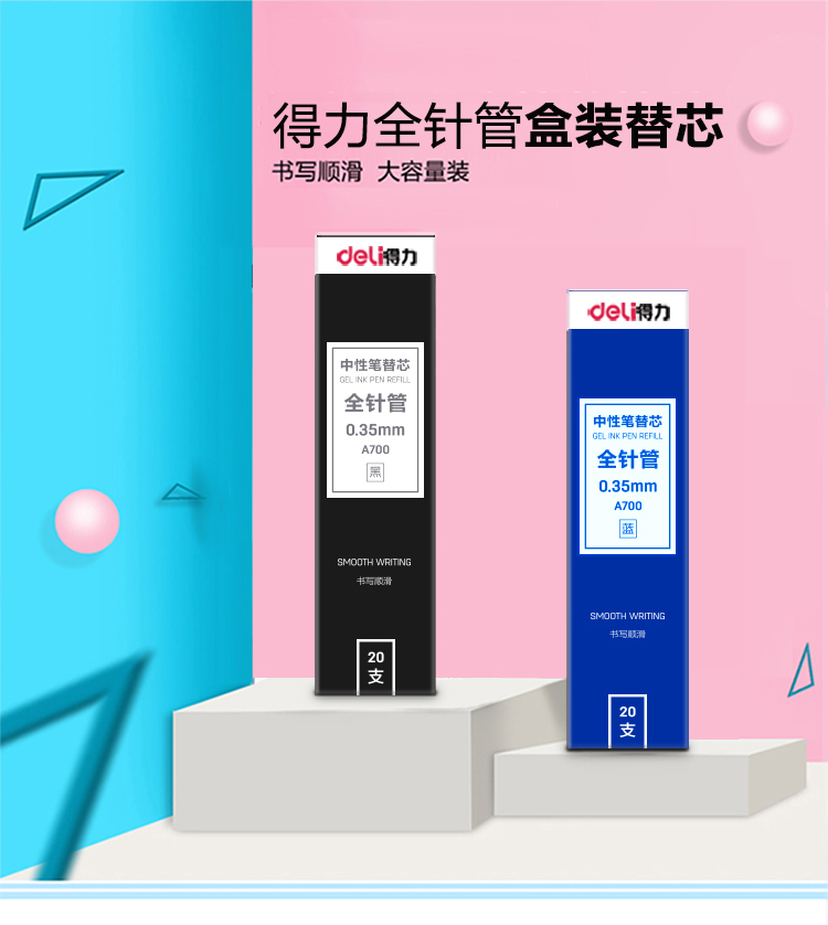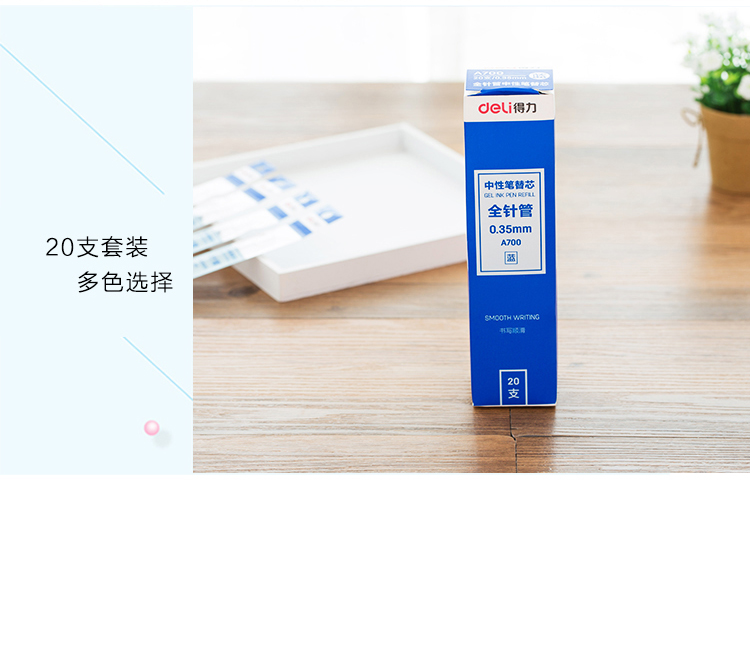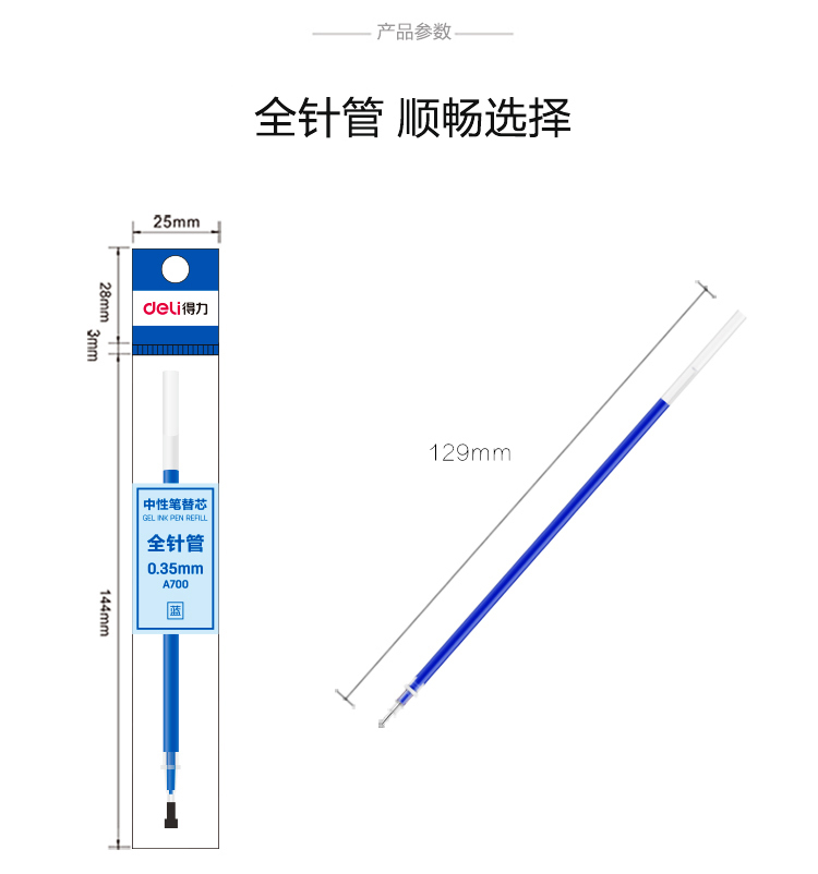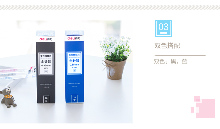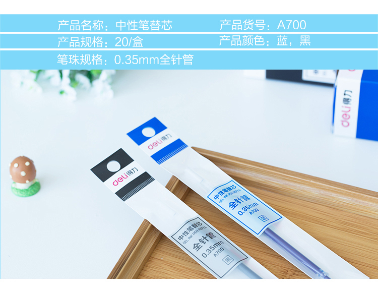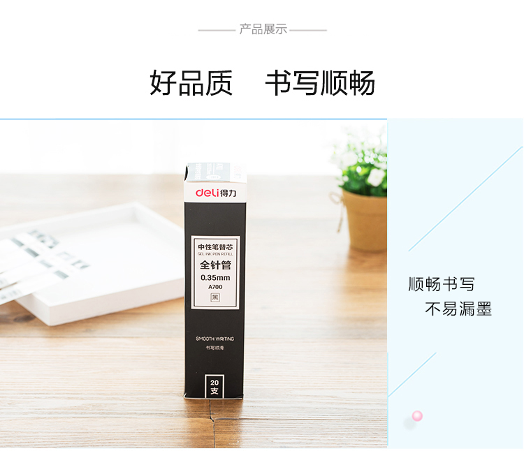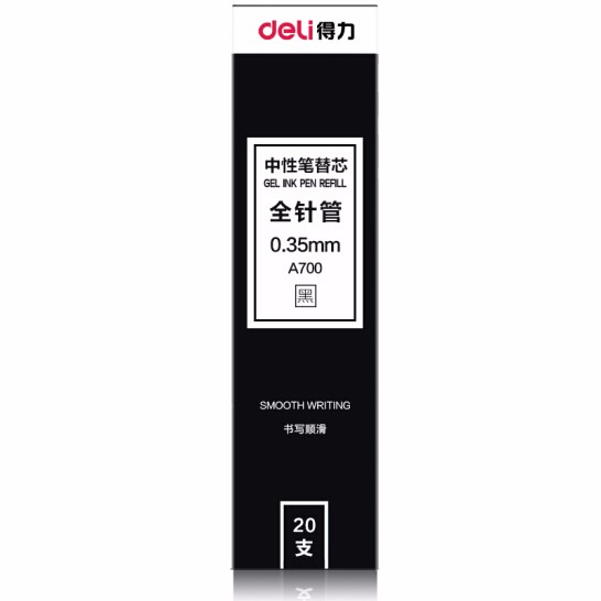 商品名称:得力(deli)全针管0.35mm黑色笔芯 中性笔水性笔签字笔替芯 20支/盒A700