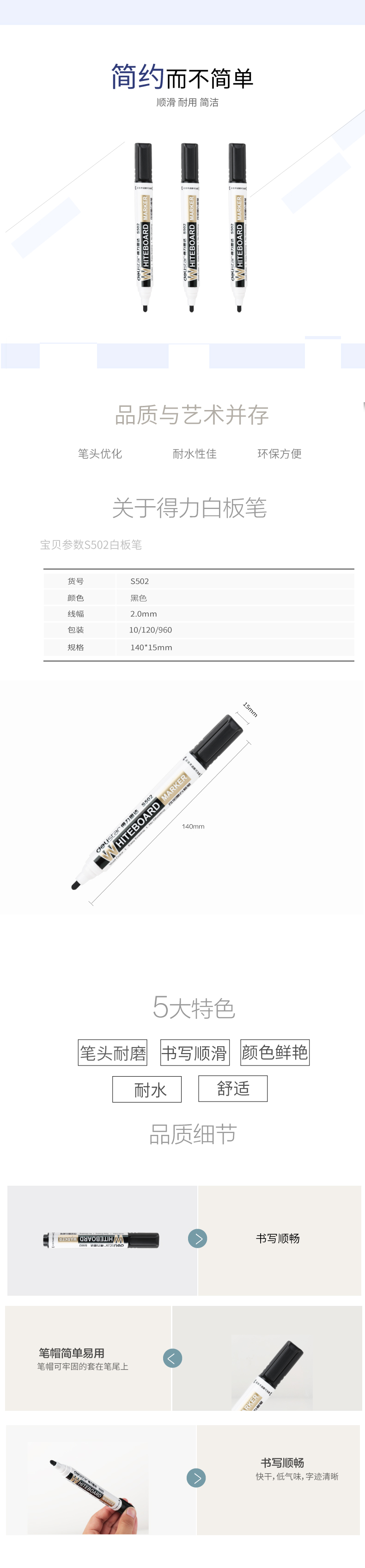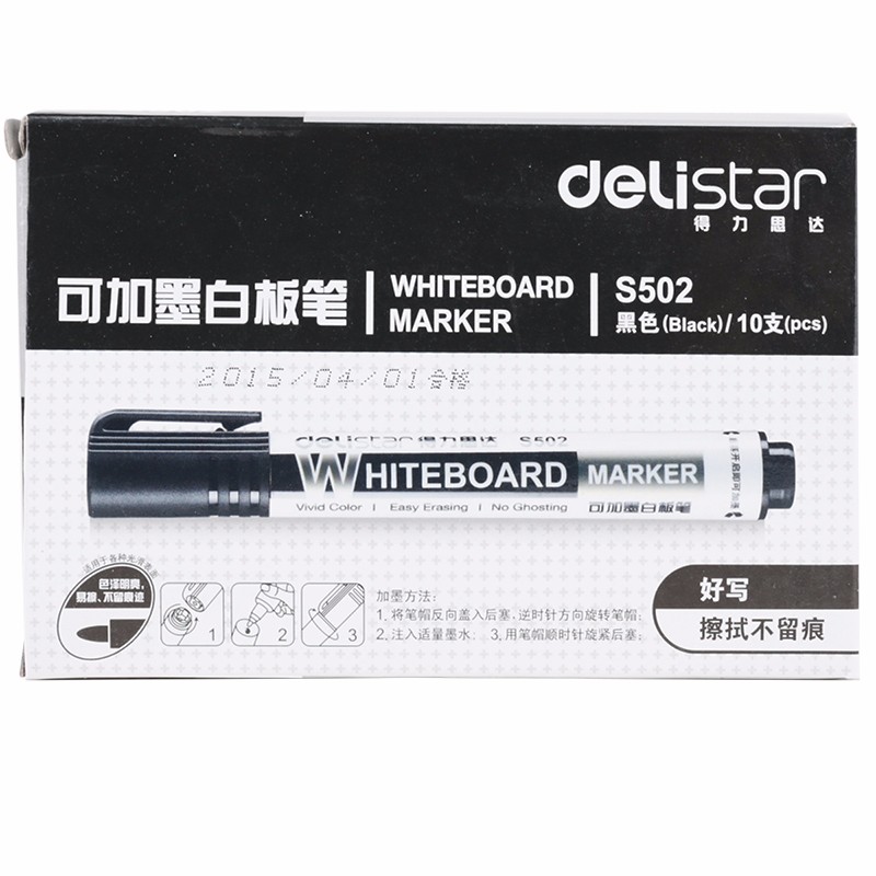 商品名称:得力思达S502可加墨白板笔(黑) 10支装