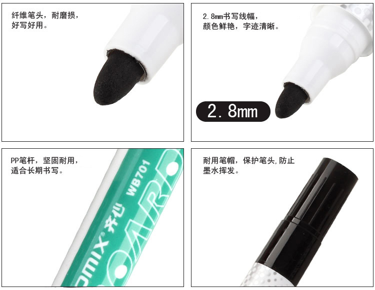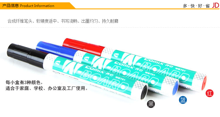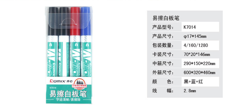 商品名称:齐心(COMIX) 4支装易擦白板笔(2黑1红1蓝)办公文具 K7014