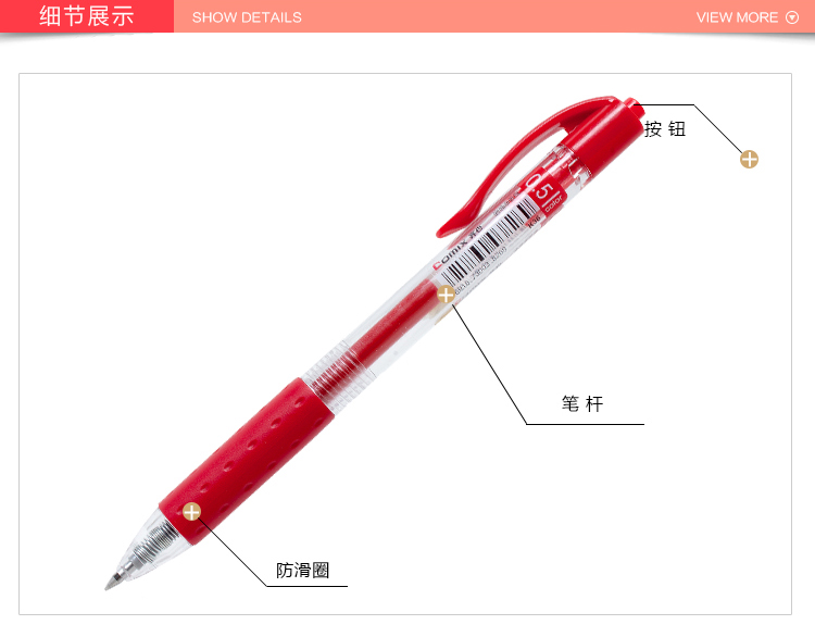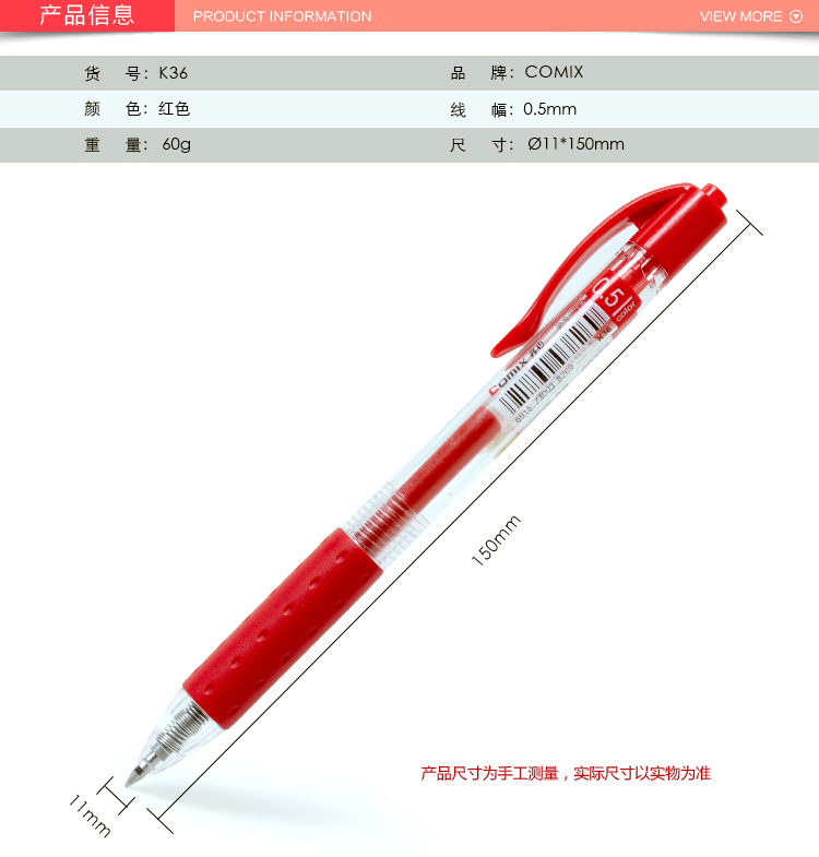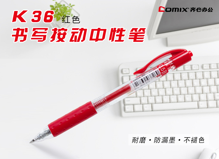 商品名称:齐心(COMIX)K36 按动式中性笔0.5mm 匹配笔芯R929红(144支/箱)