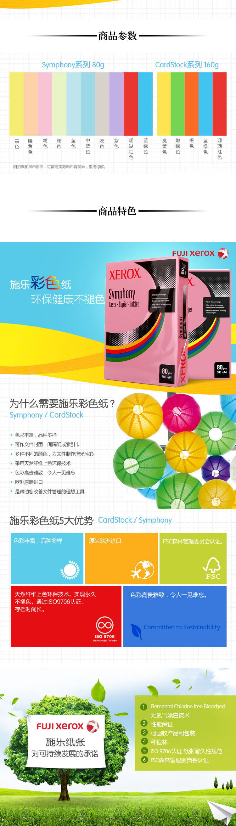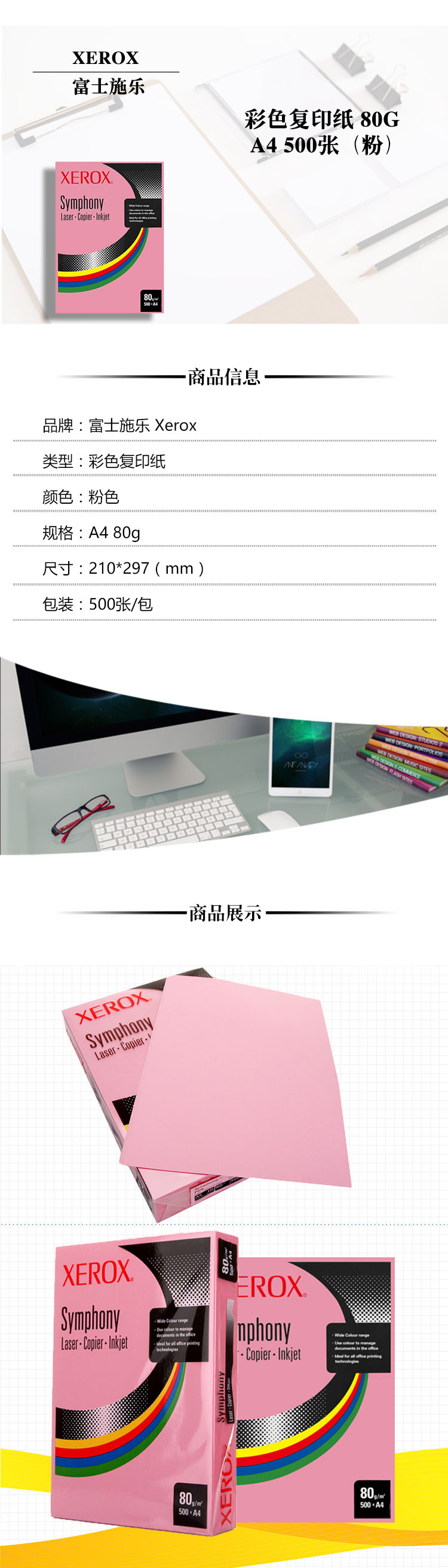 商品名称:富士施乐 Xerox 彩色复印纸 80g A4 500张/包 5包/箱 中蓝(不包邮)