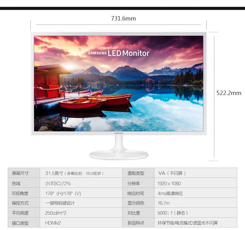 商品名称:三星(SAMSUNG)S32F351FUC 31.5英寸全高清液晶显示器32 可壁挂