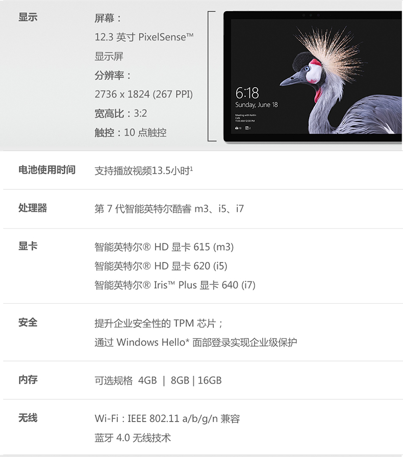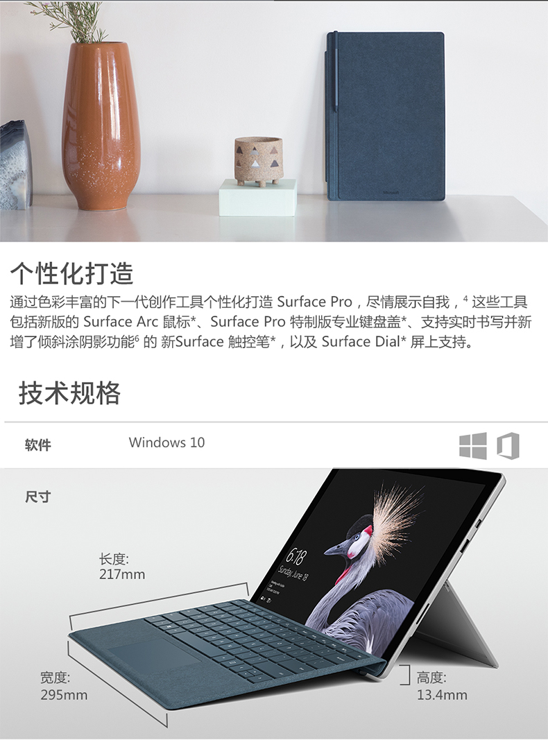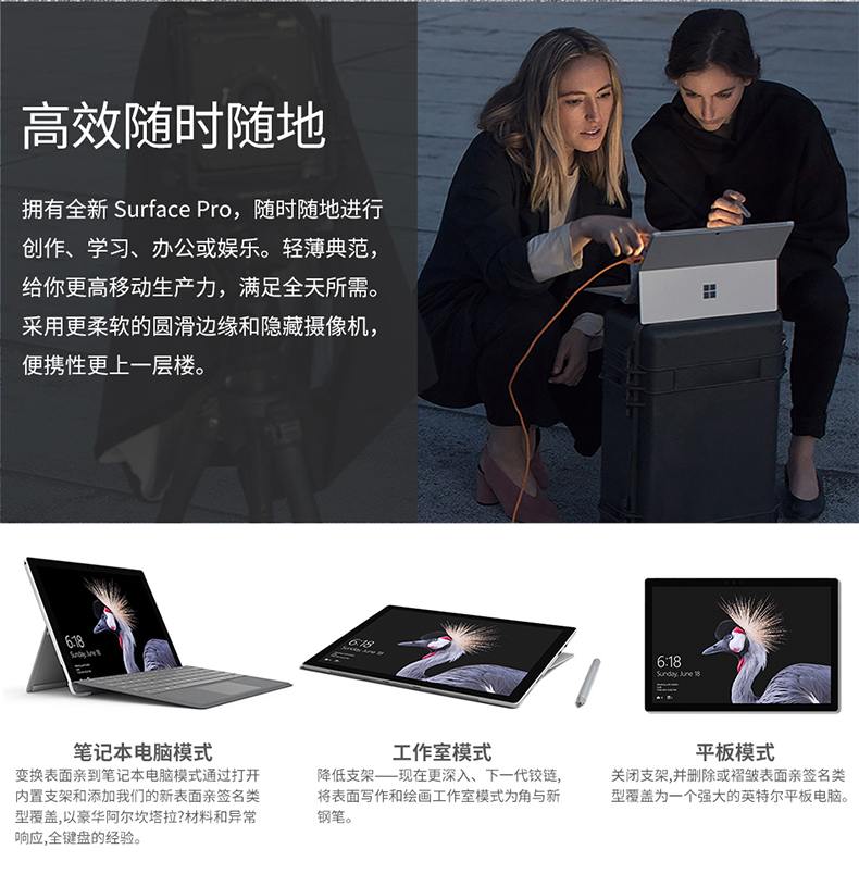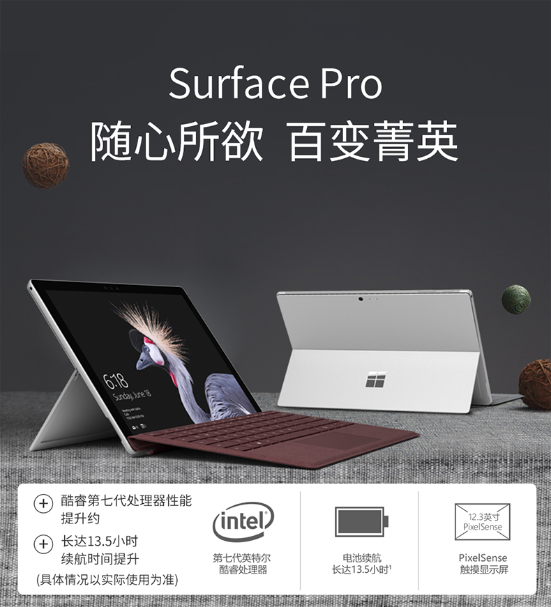 微软(Microsoft)Surface Pro FKH-00009 12.3英寸二合一平板电脑(不包邮)