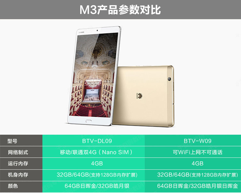 商品名称:华为(HUAWEI)M3 8.0英寸 平板电脑(不包邮) 日辉金
