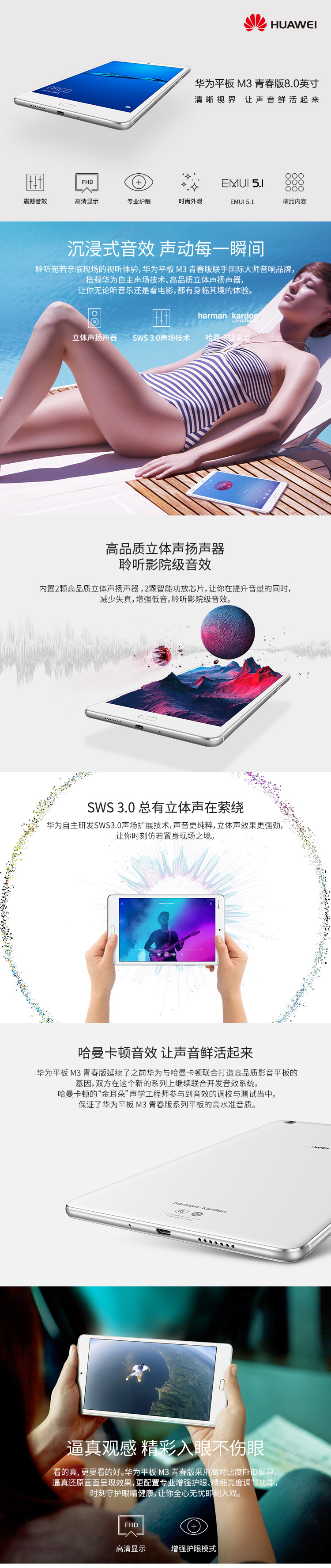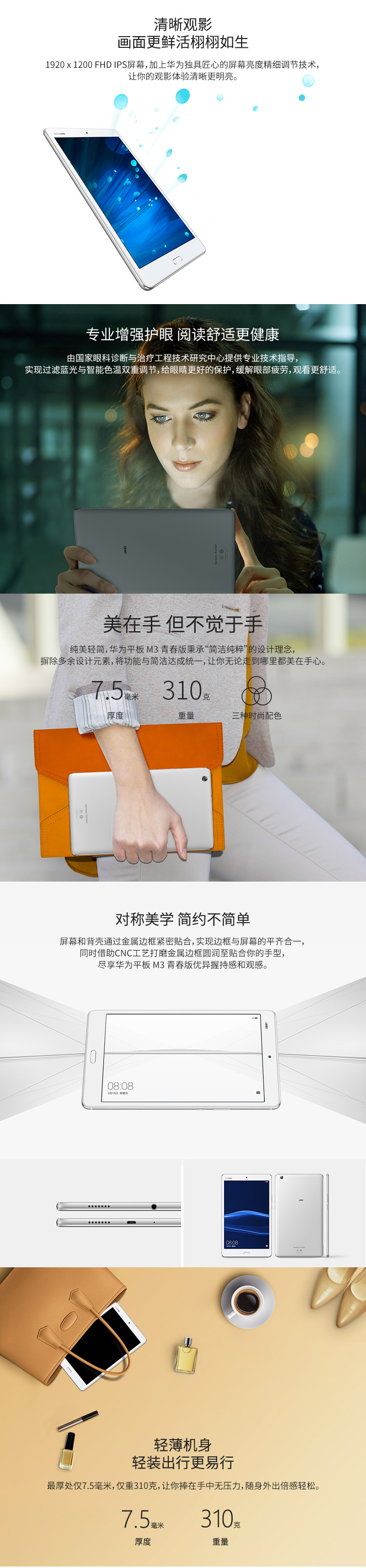 商品名称:华为(HUAWEI)M3 青春版 10英寸 平板电脑(不包邮) 流光金