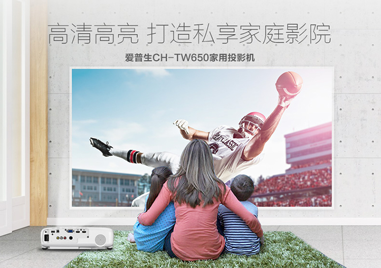 爱普生(EPSON)CH-TW650 家用 投影机 投影仪(1080P 3100流明 双HDMI接口 商住两用)