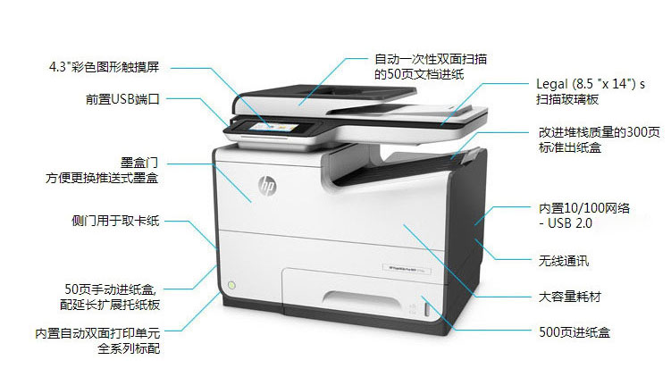 商品名称:惠普(HP)X577DW页宽阵列A4喷墨打印机复印扫描传真一体机办公一体