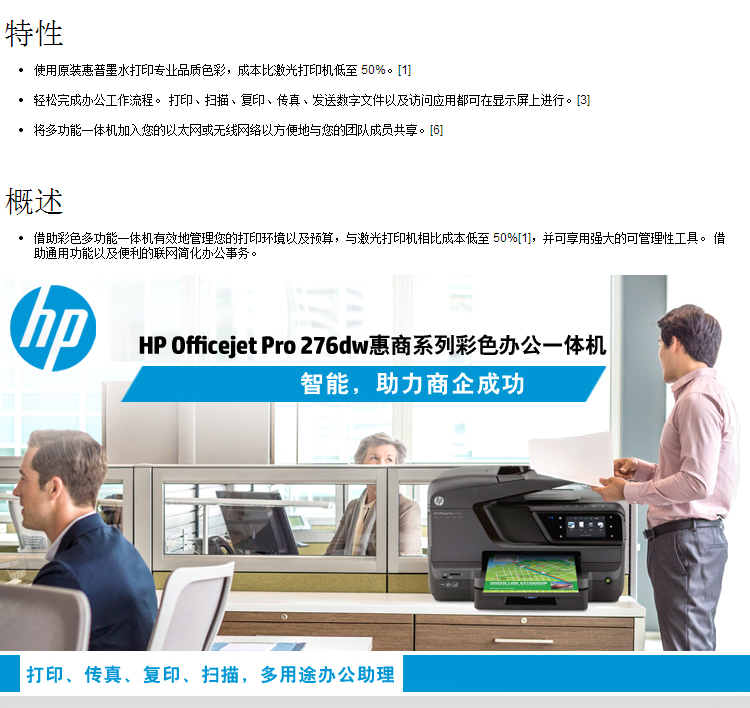 商品名称:惠普(HP)276dw 打印机 A4彩色喷墨打印机一体机