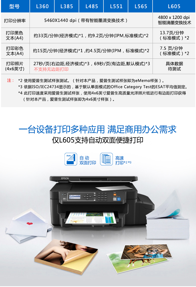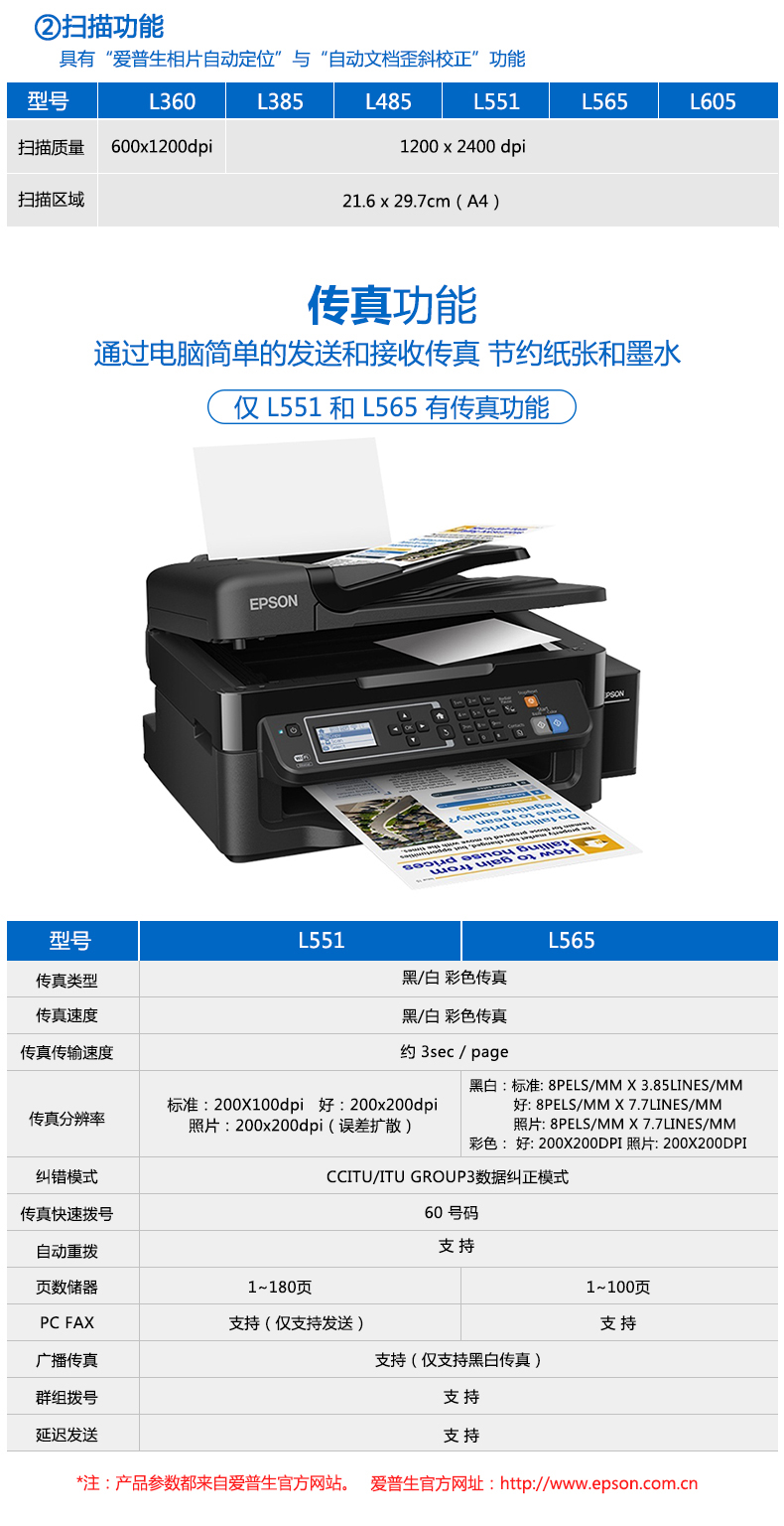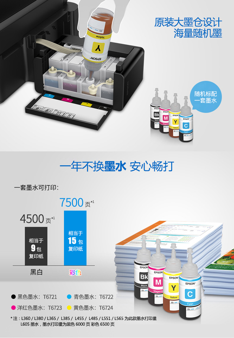 商品名称:爱普生(EPSON) L565 彩色照片打印机墨仓式喷墨多功能一体机