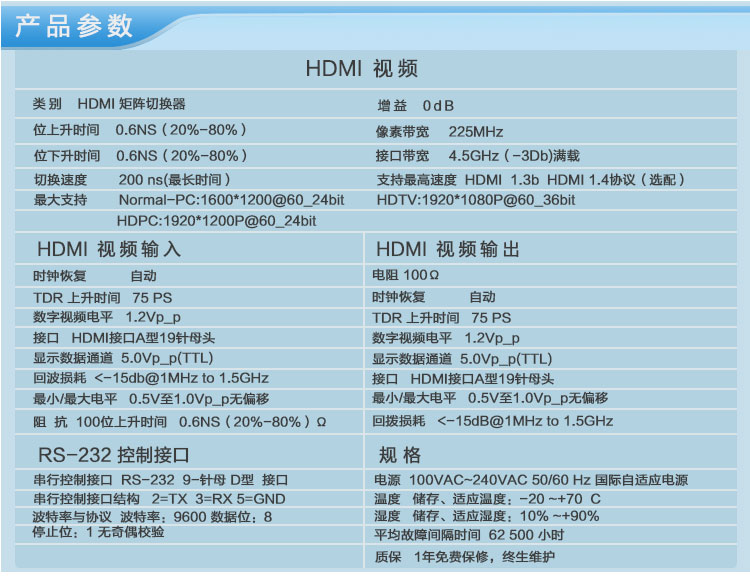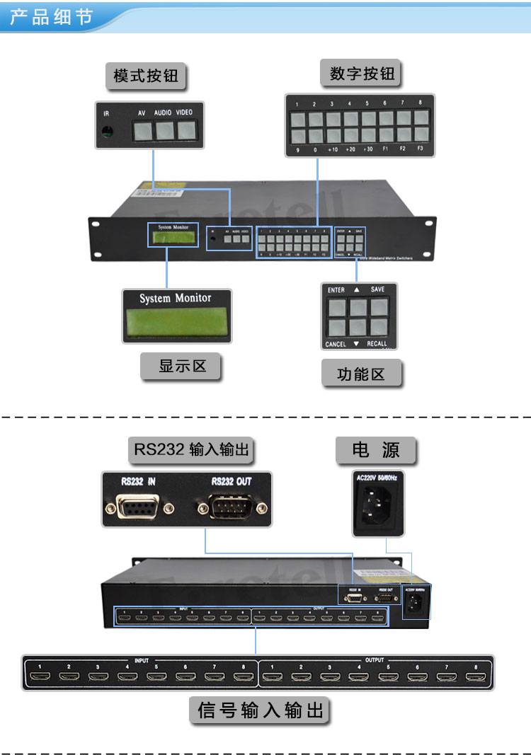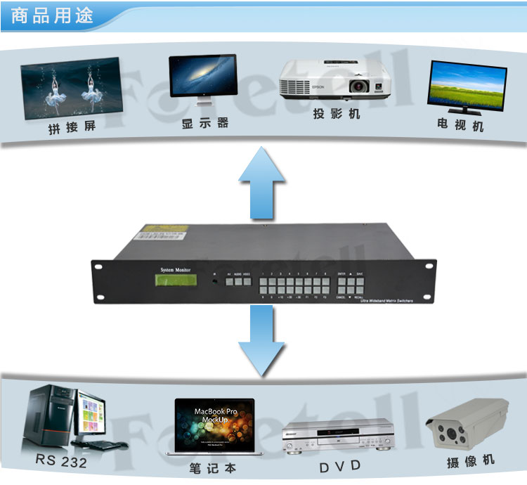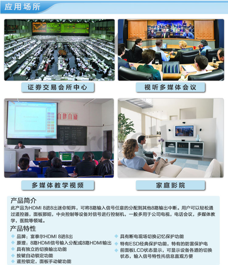 商品名称:富泰尔 HDMI矩阵8进8出 网络监控服务器/切换器/拼接控制器高清