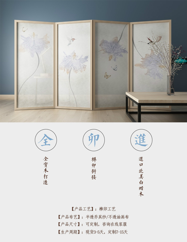 屏风隔断时尚现代中式客厅玄关门创意简约座屏酒店办公室折屏 防水免安装