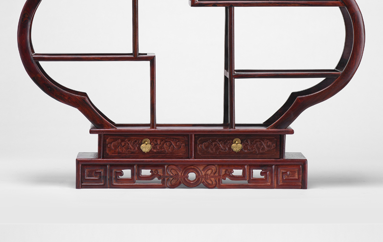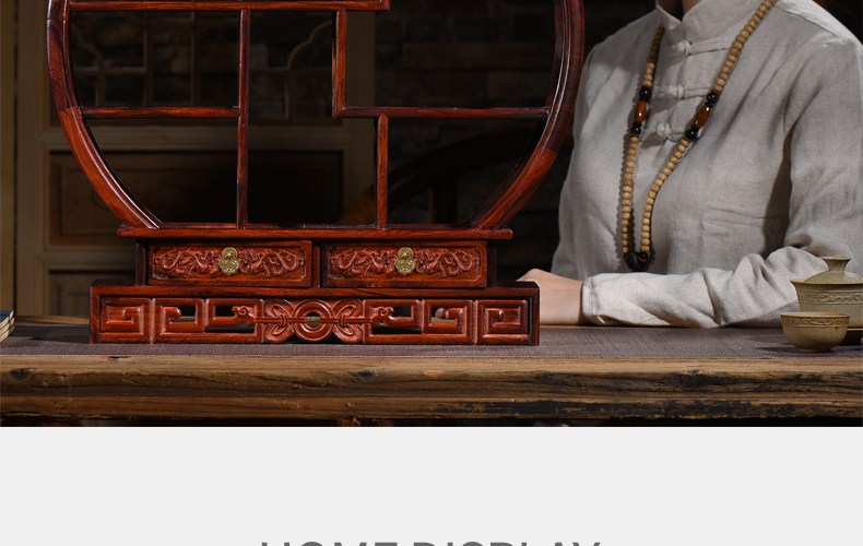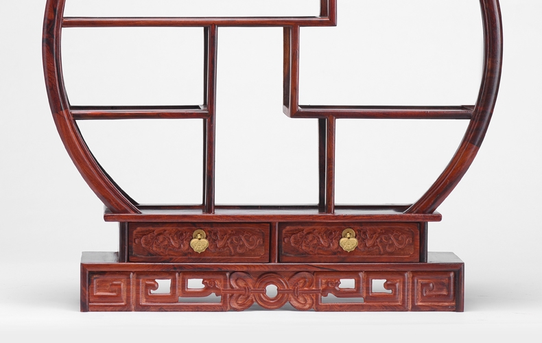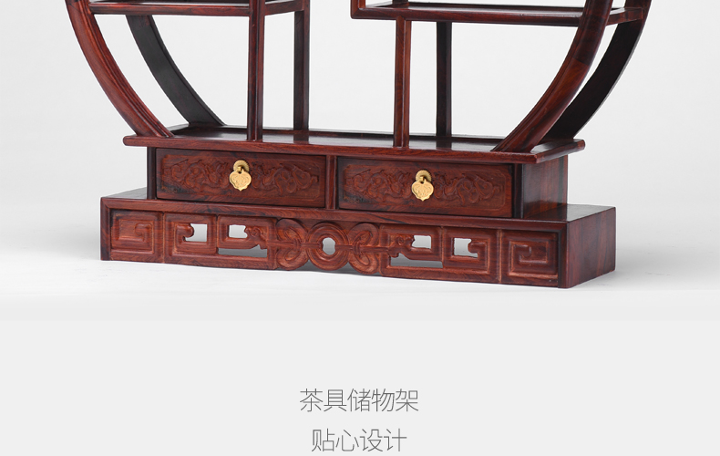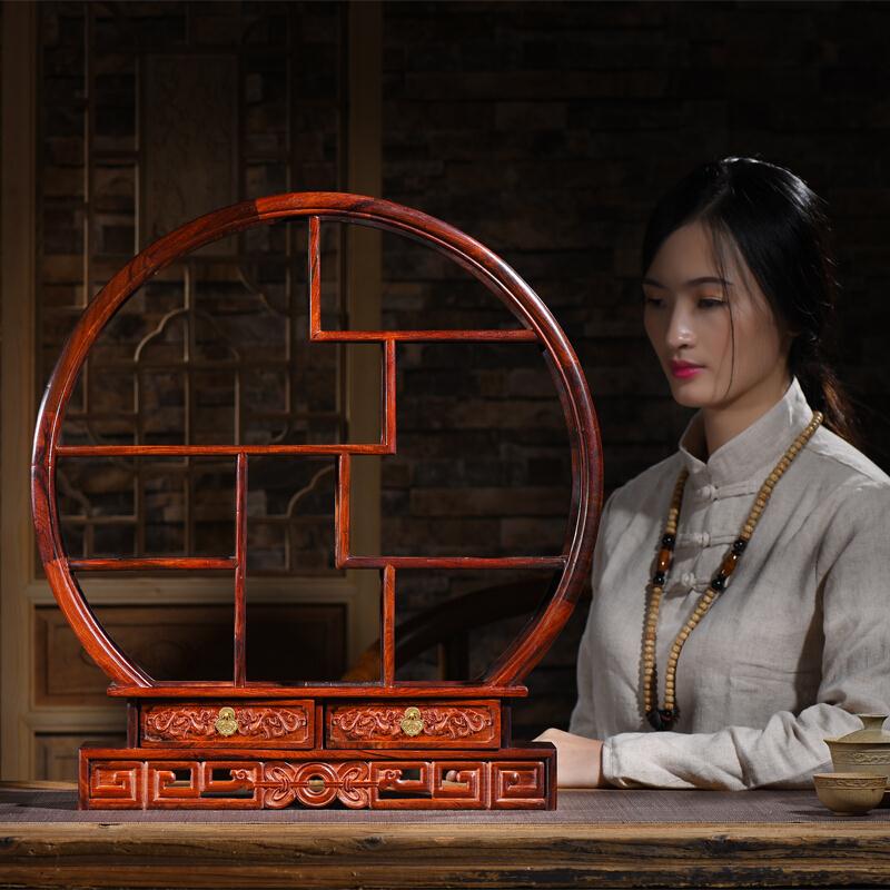 商品名称:贡匠 红酸枝客厅圆形小博古架实木中式桌面仿古多宝阁置物架红酸
