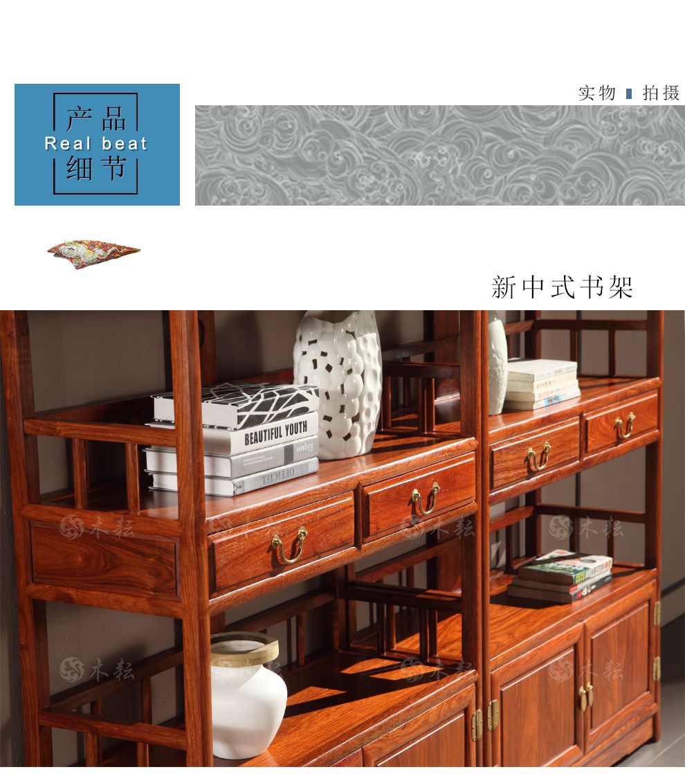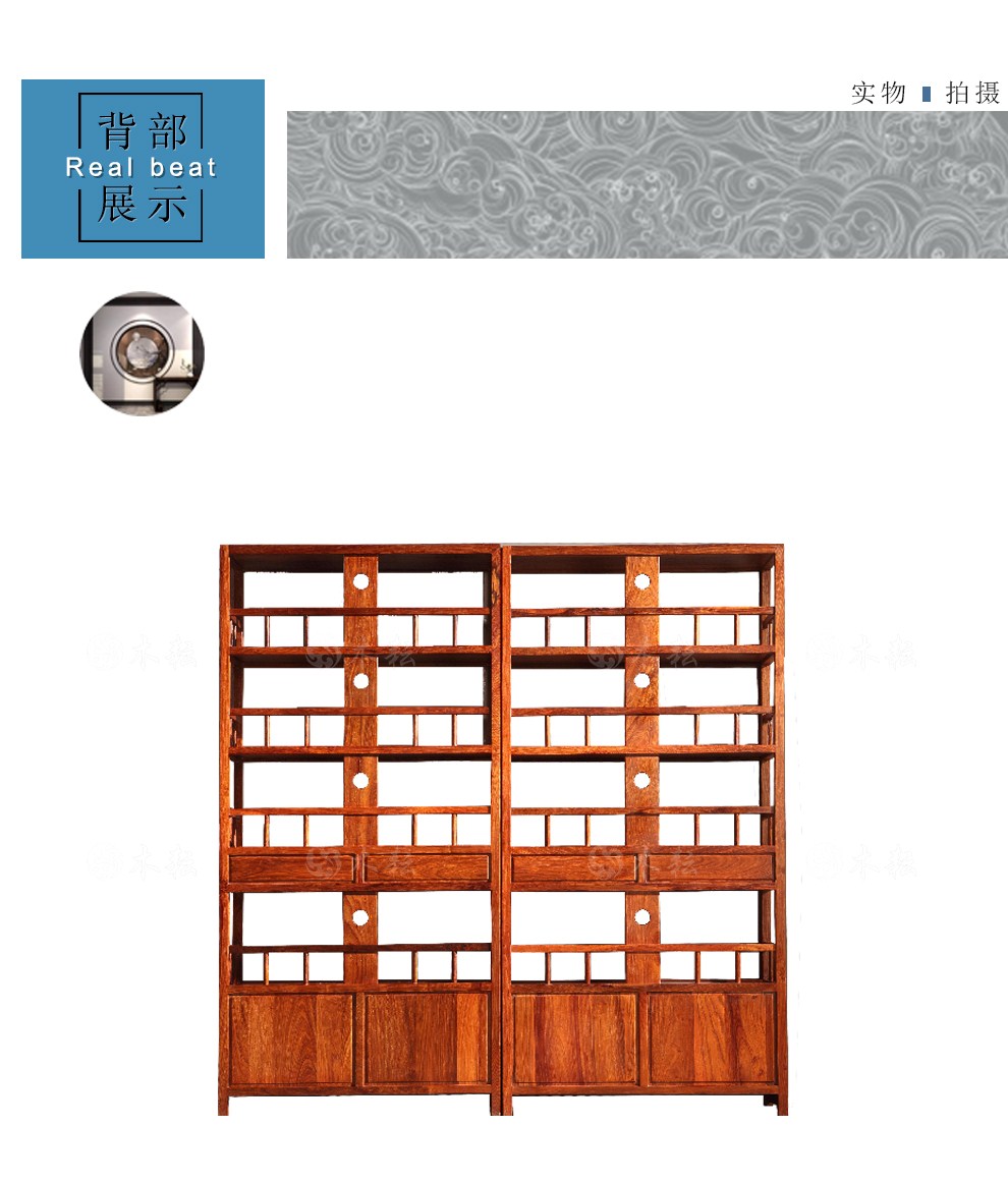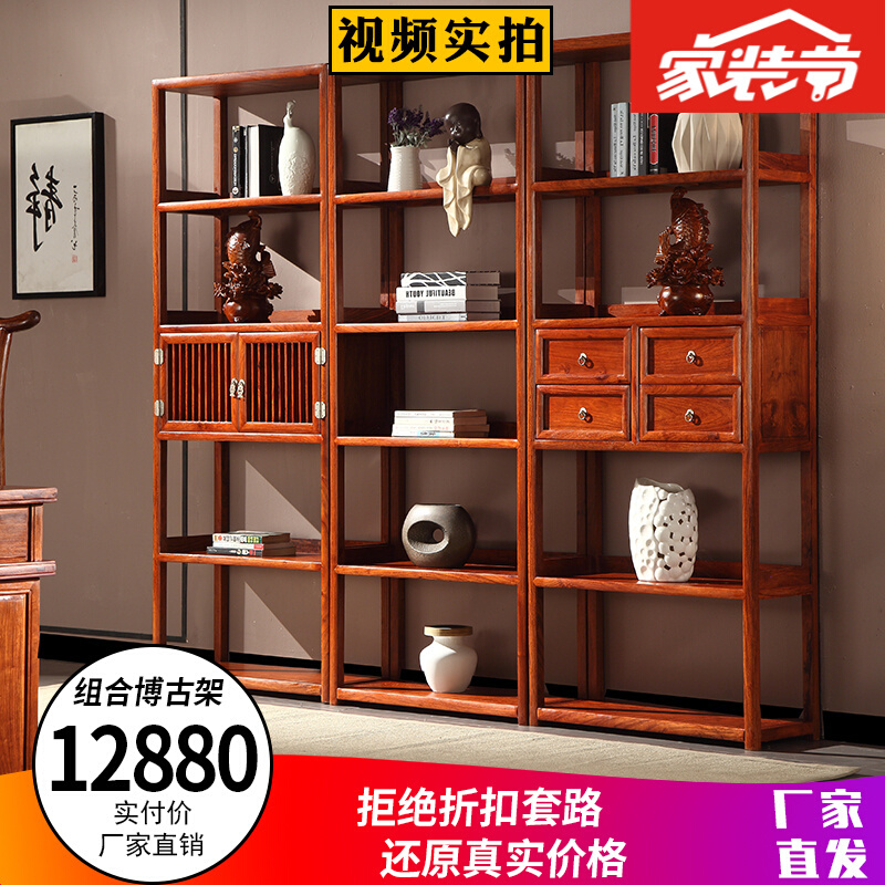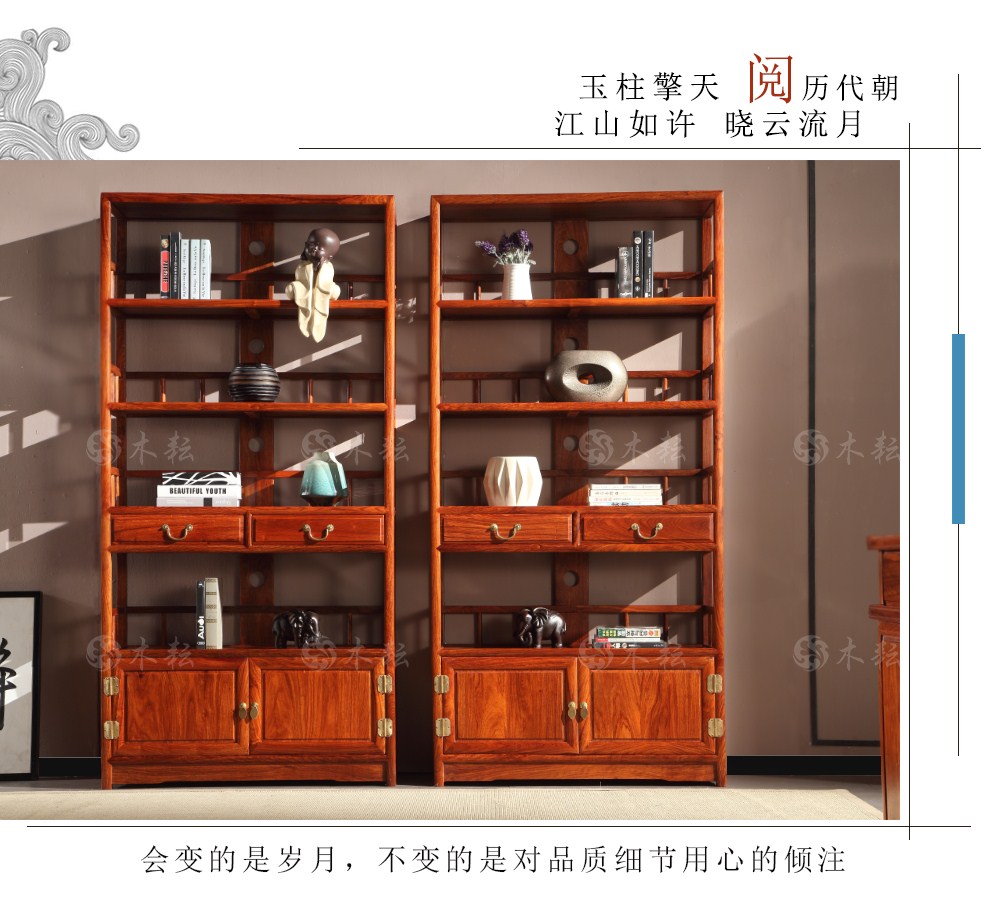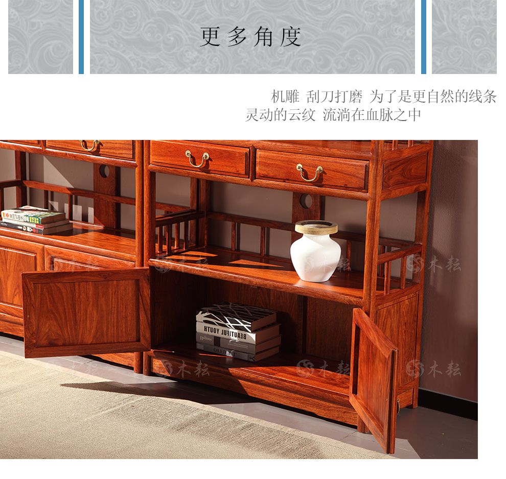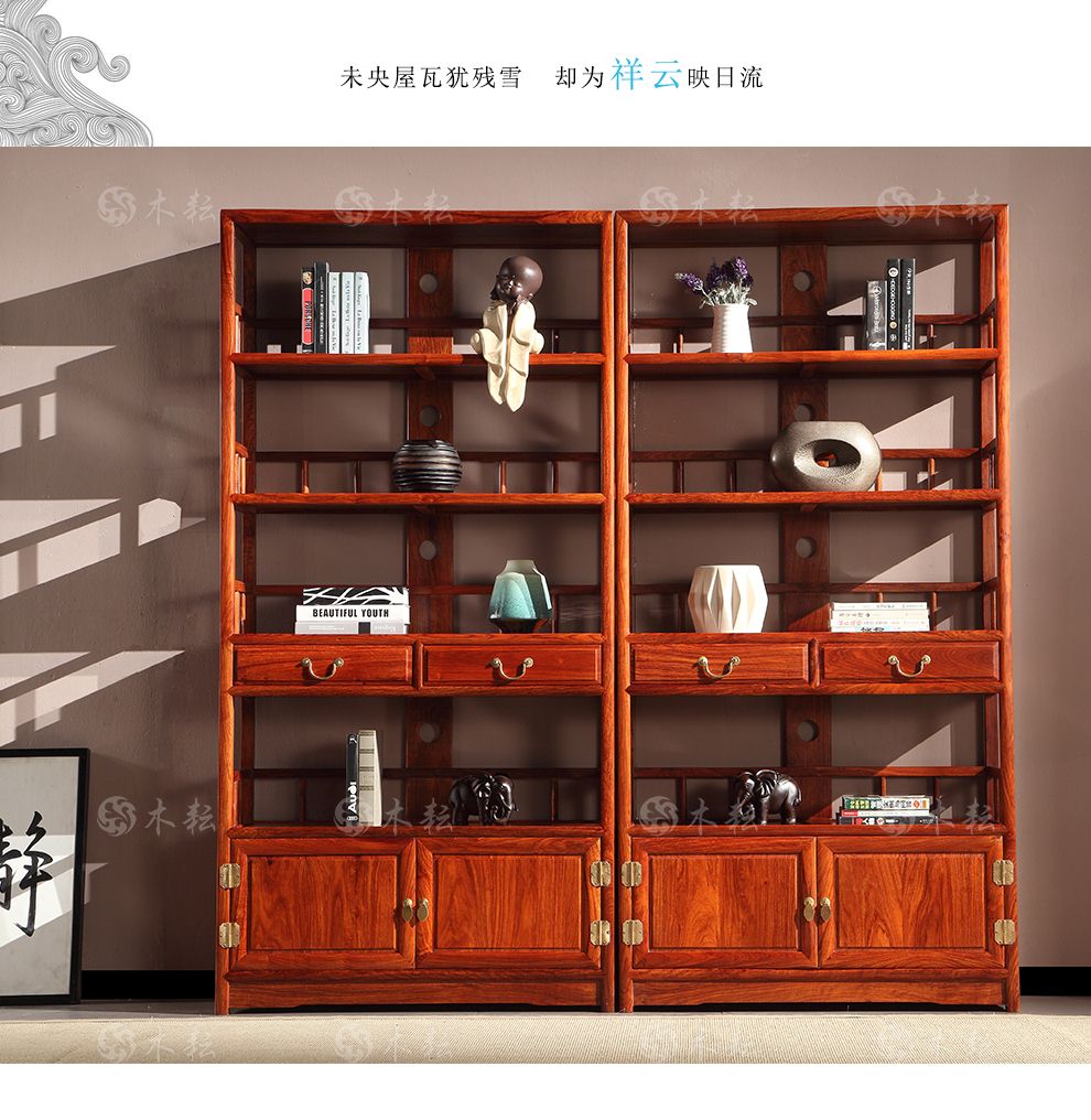 商品名称:木耘 红木家具非洲花梨(学名:刺猬紫檀)实木书柜书架 博古架