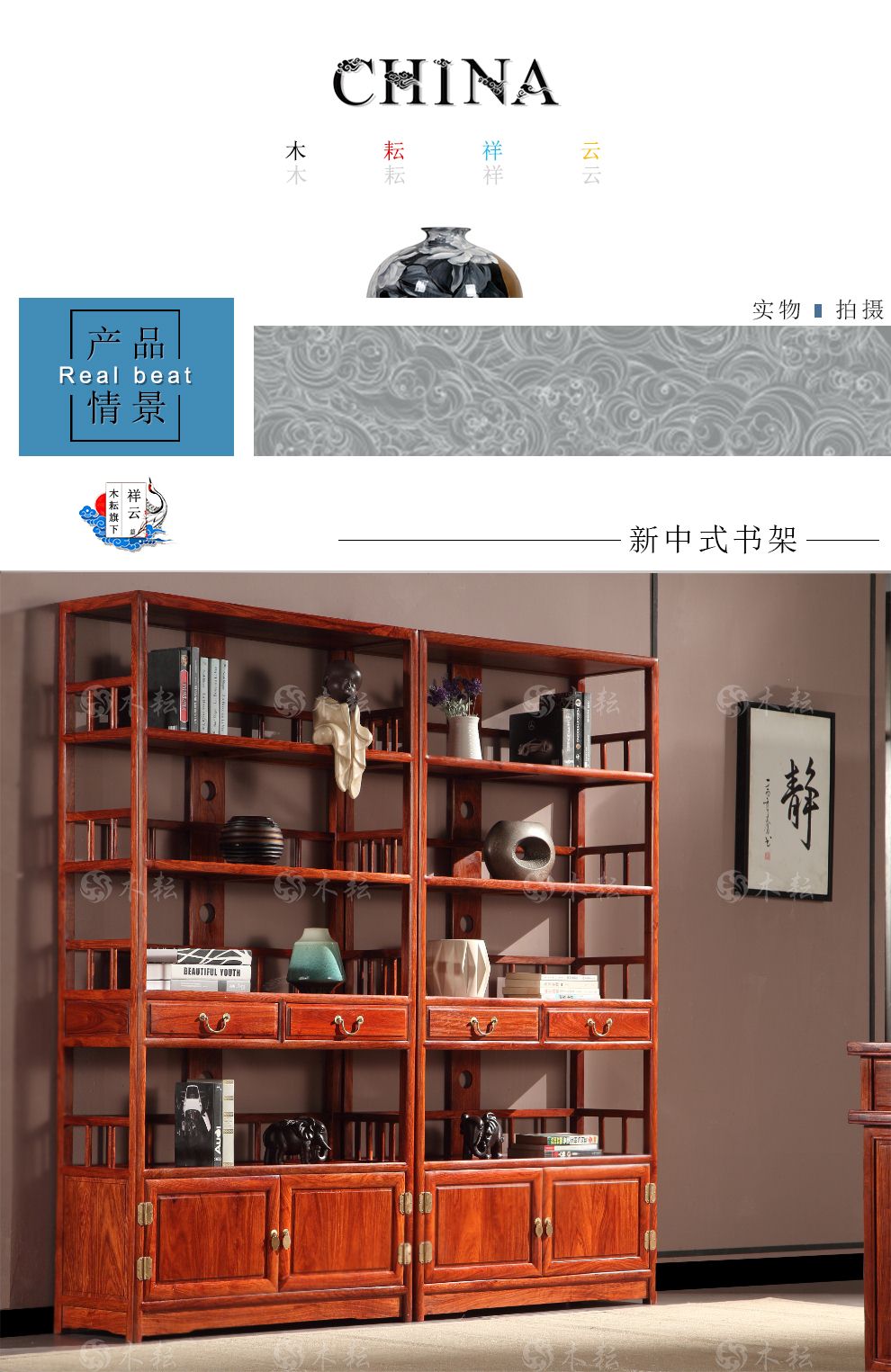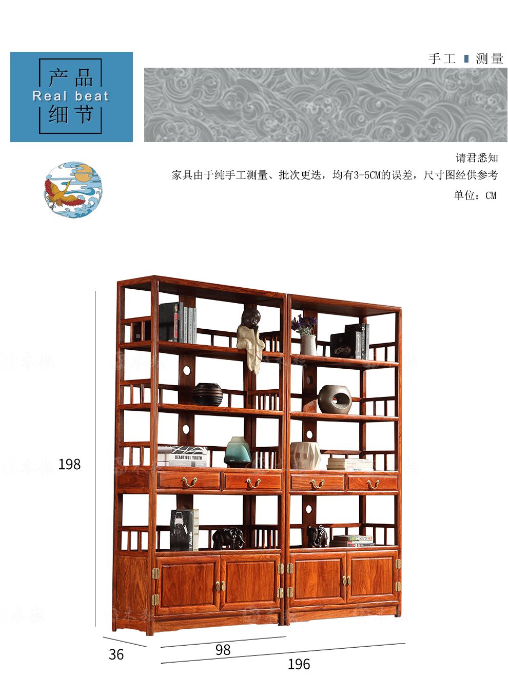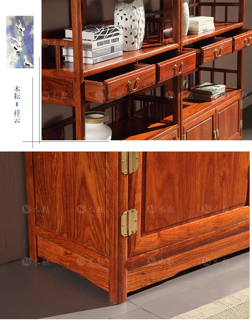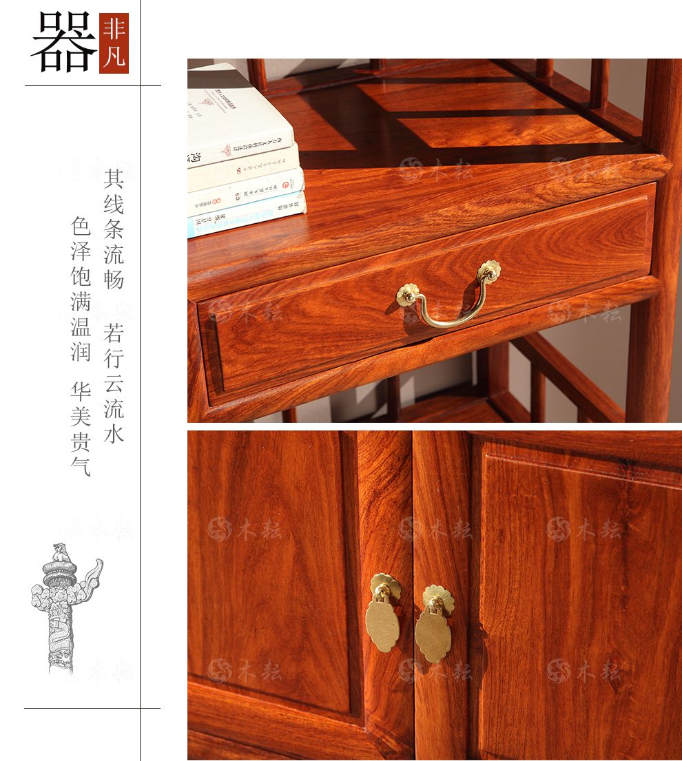 商品名称:木耘 红木家具非洲花梨(学名:刺猬紫檀)实木书柜书架 博古架