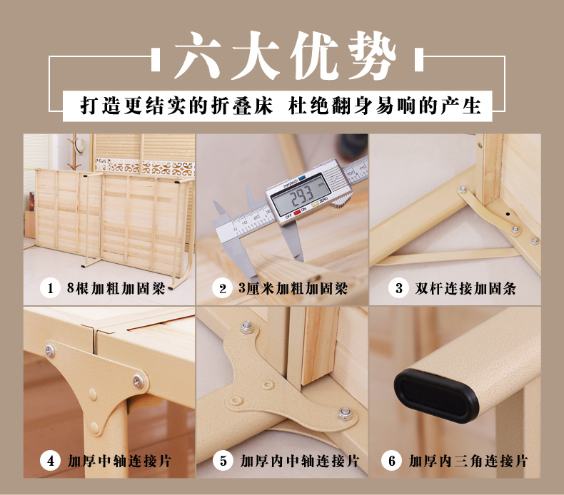 商品名称:巧霞家居加固钢架折叠床单人床实木床双人床简易木板床0.7M钢木