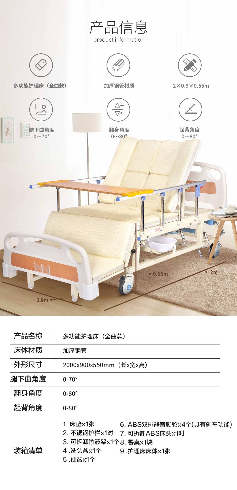 钢塑 可孚护理床老人家用多功能病床瘫痪护理医疗床手动翻身床带便孔