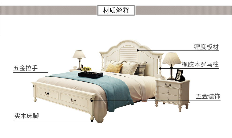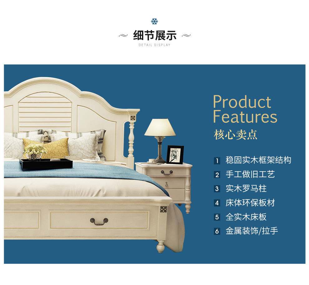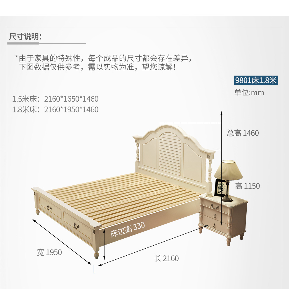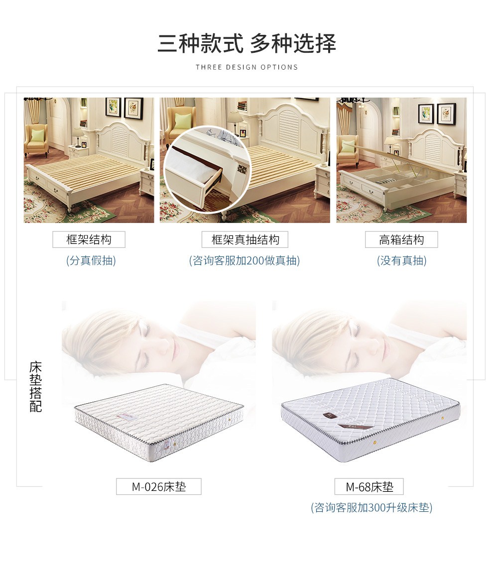 商品名称:贝黎诗 床 实木床 美式床 美式乡村 韩式田园床 欧式床双人床现