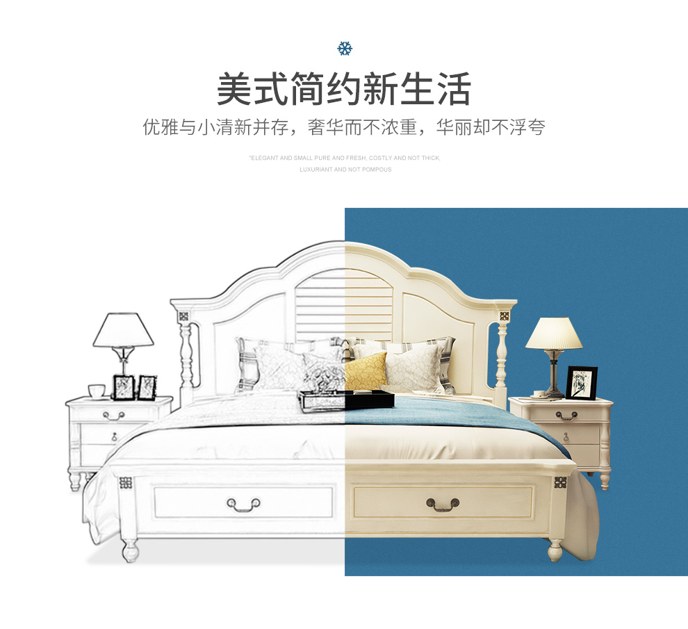 贝黎诗 床 实木床 美式床 美式乡村 韩式田园床 欧式床双人床现