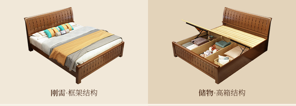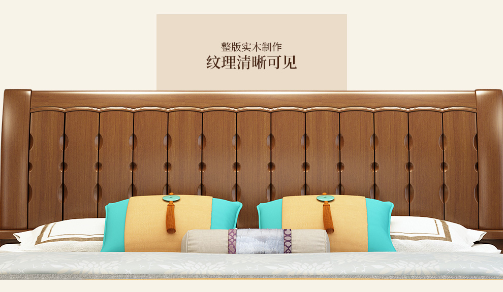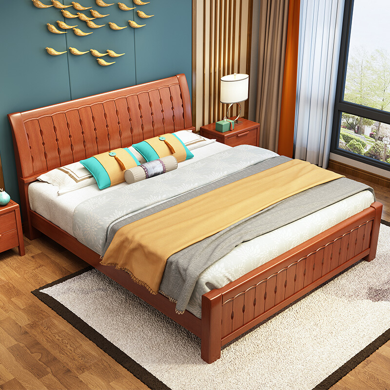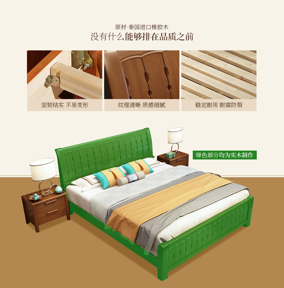 商品名称:丽巢 床 实木床1.8/1.5米现代中式卧室实木家具婚床双人床橡胶木