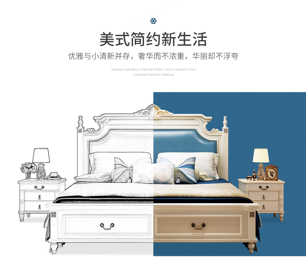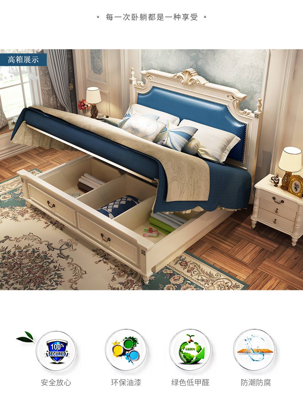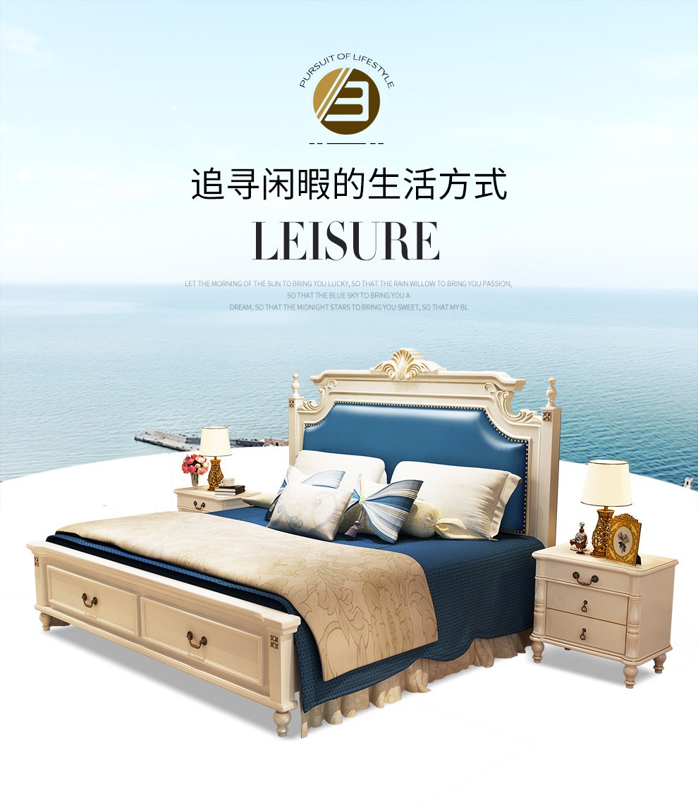 贝黎诗 床 欧式床 实木床 美式床 双人床 韩式田园床 高箱床美式