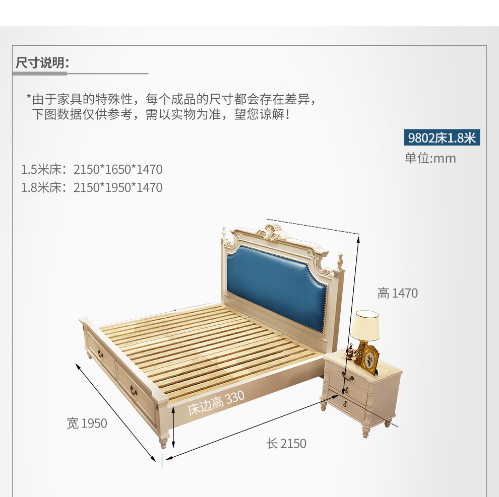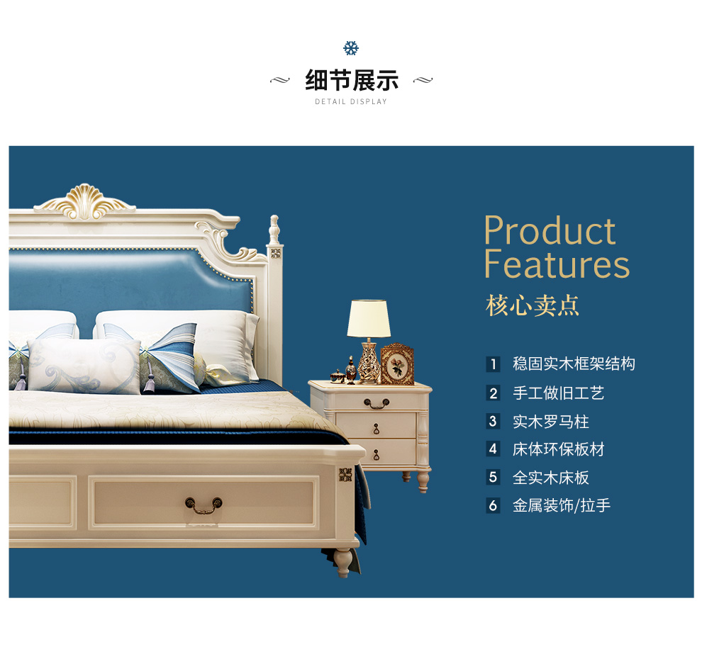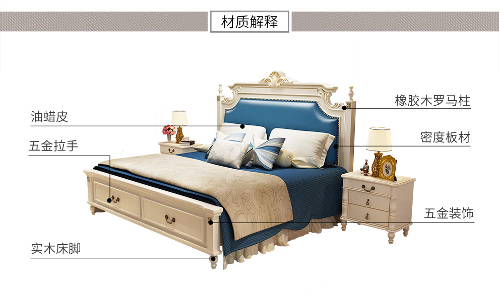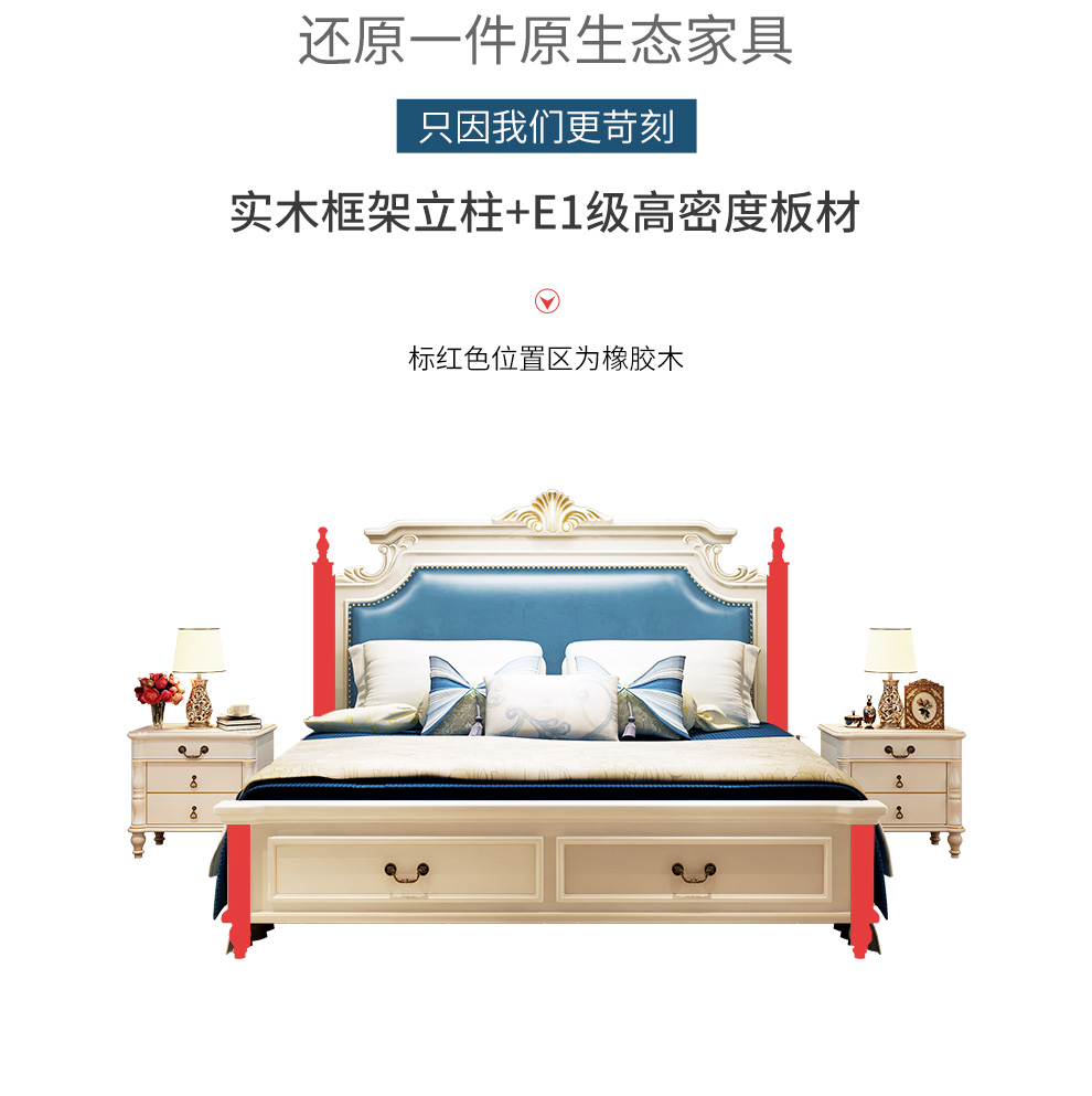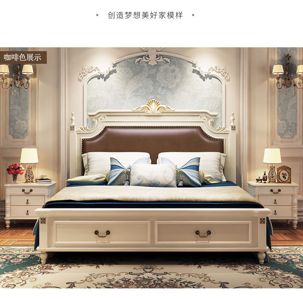 商品名称:贝黎诗 床 欧式床 实木床 美式床 双人床 韩式田园床 高箱床美式