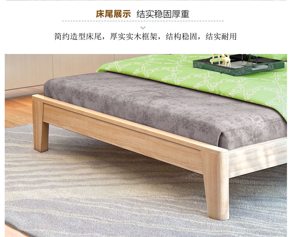 商品名称:蓓影 北欧实木床松木床单人床木床双人床卧室大床原木无漆床送3