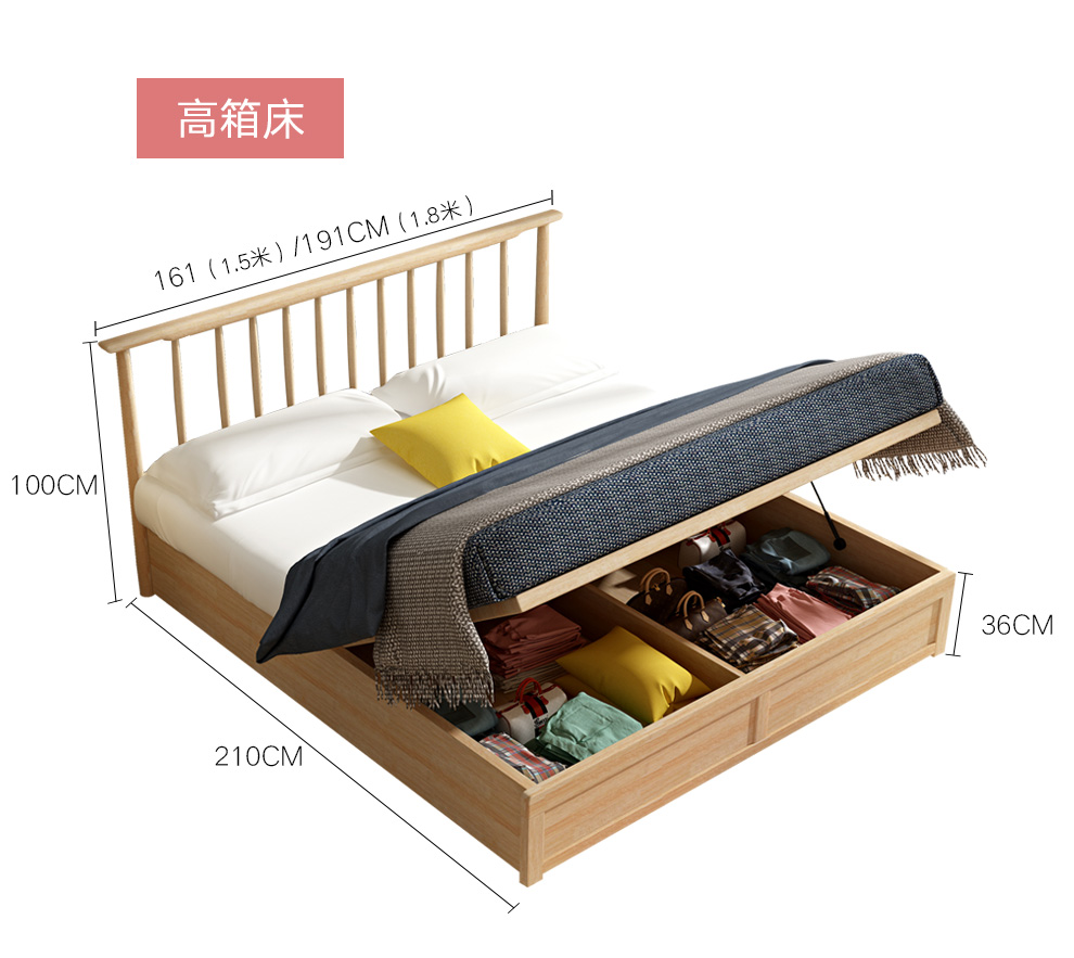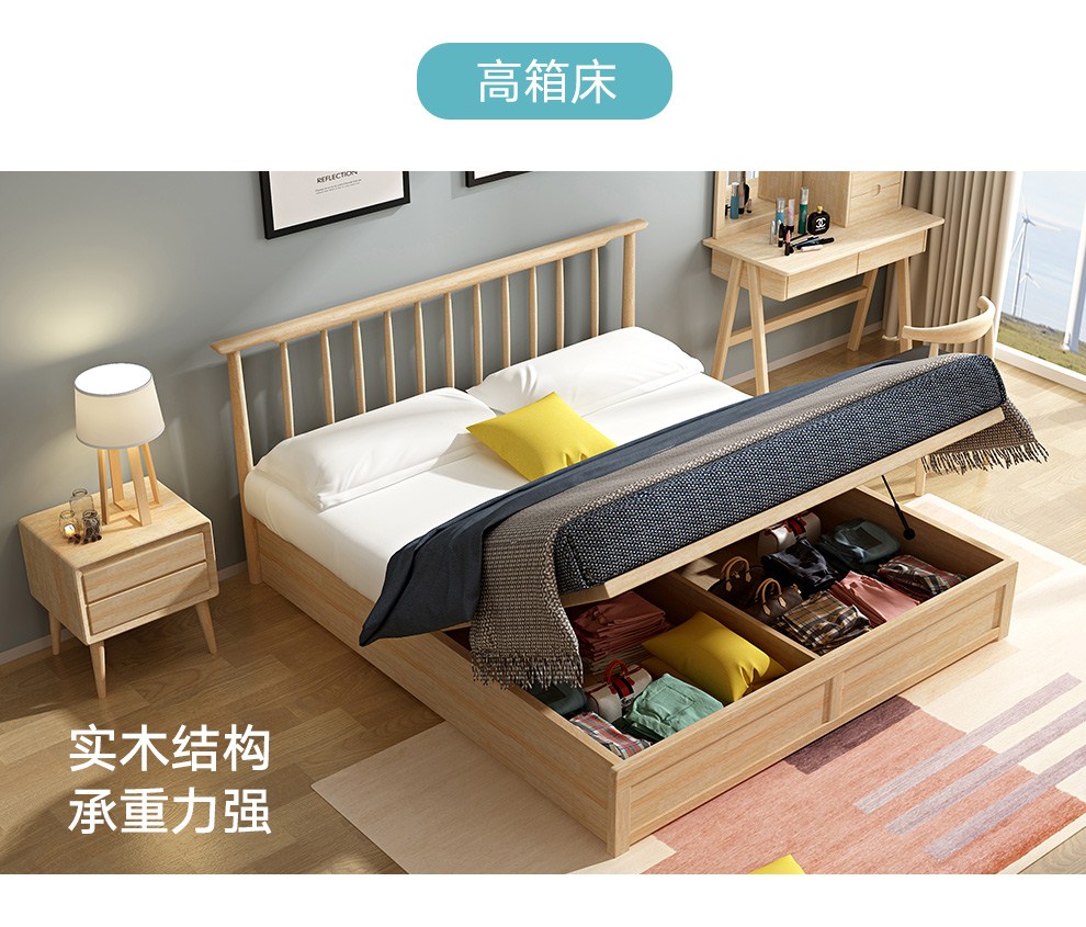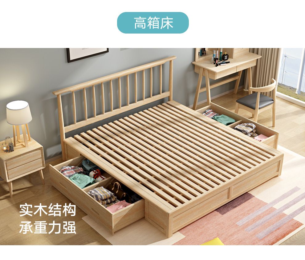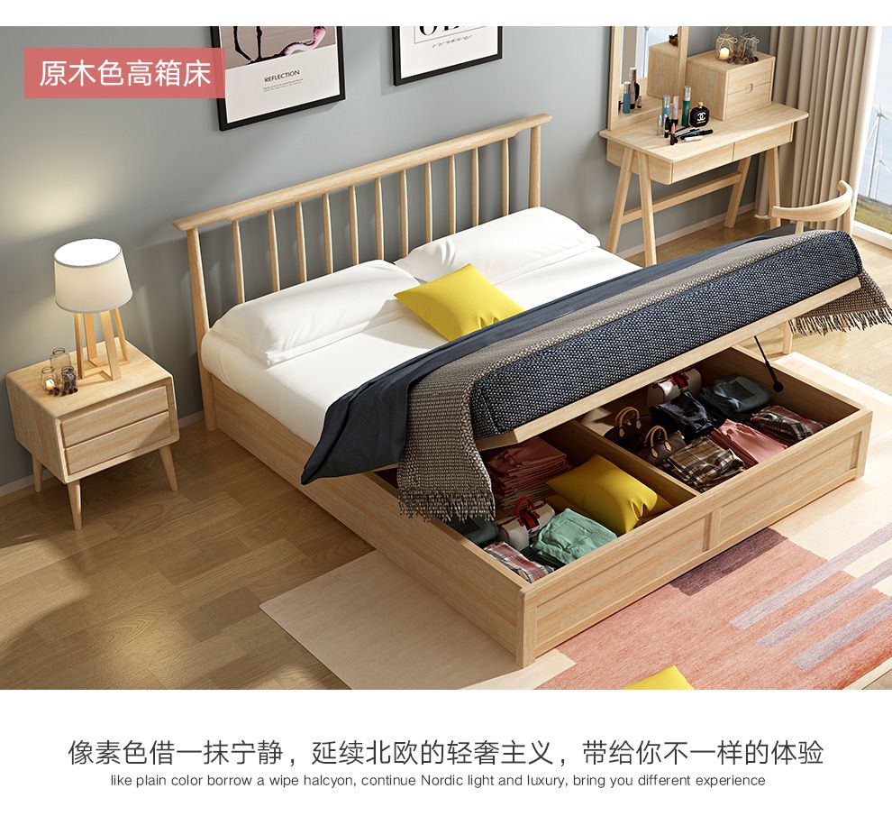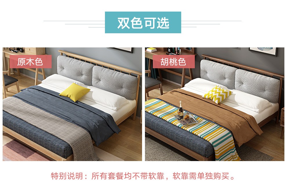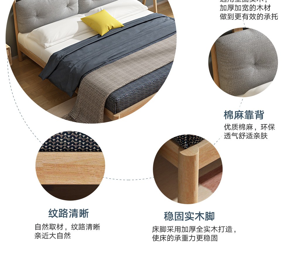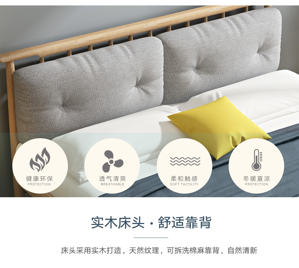 商品名称:锦巢床北欧实木床软靠背婚床1.5米单人床1.8米双人大床高箱储物