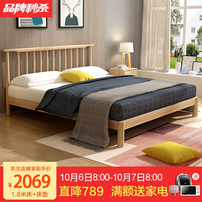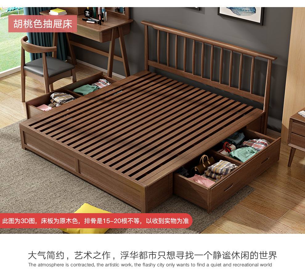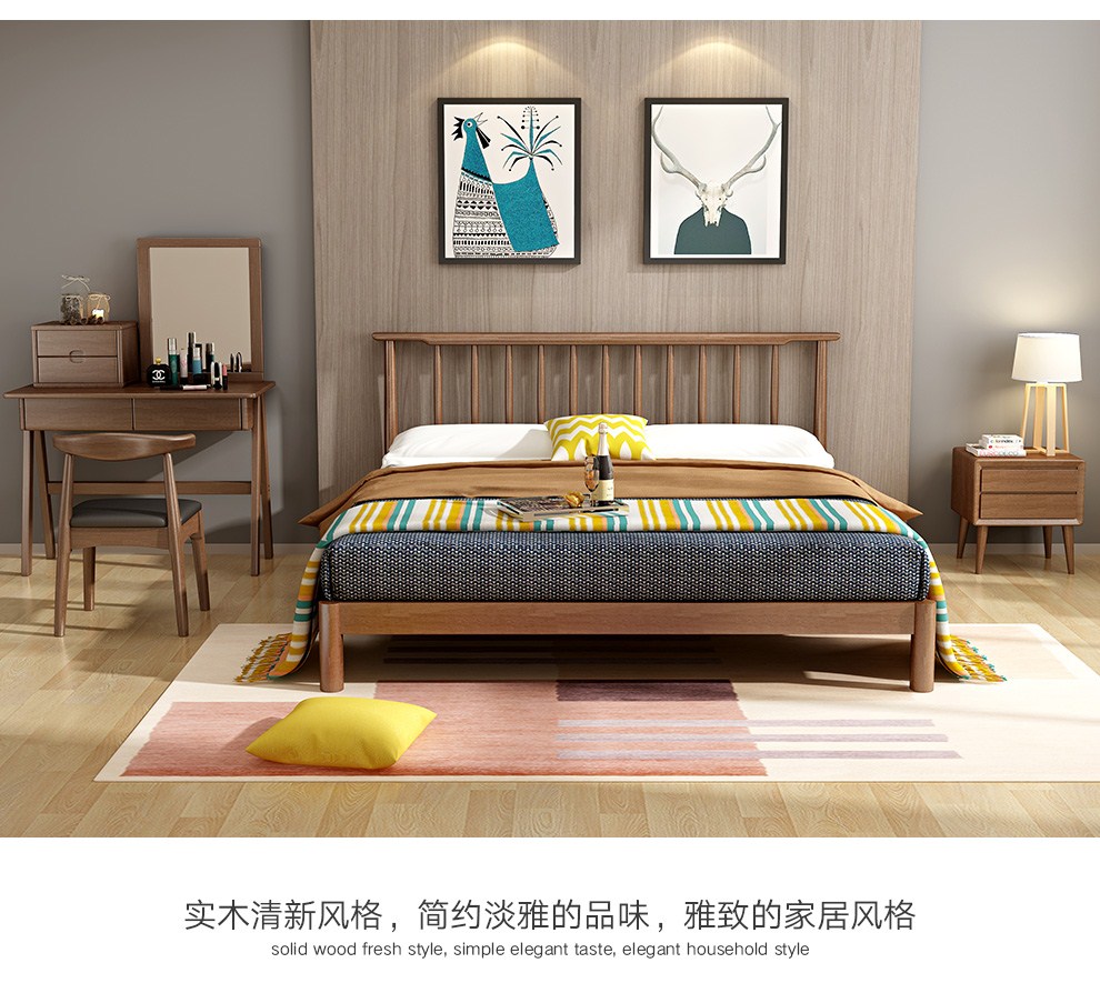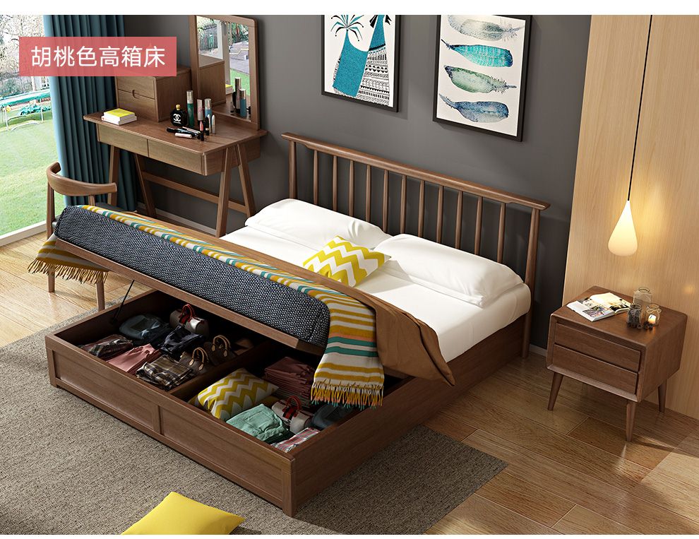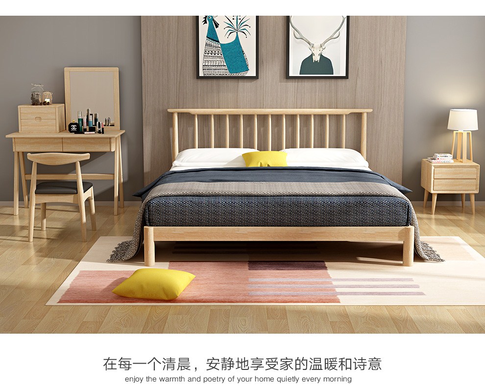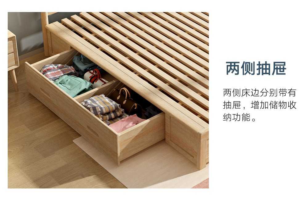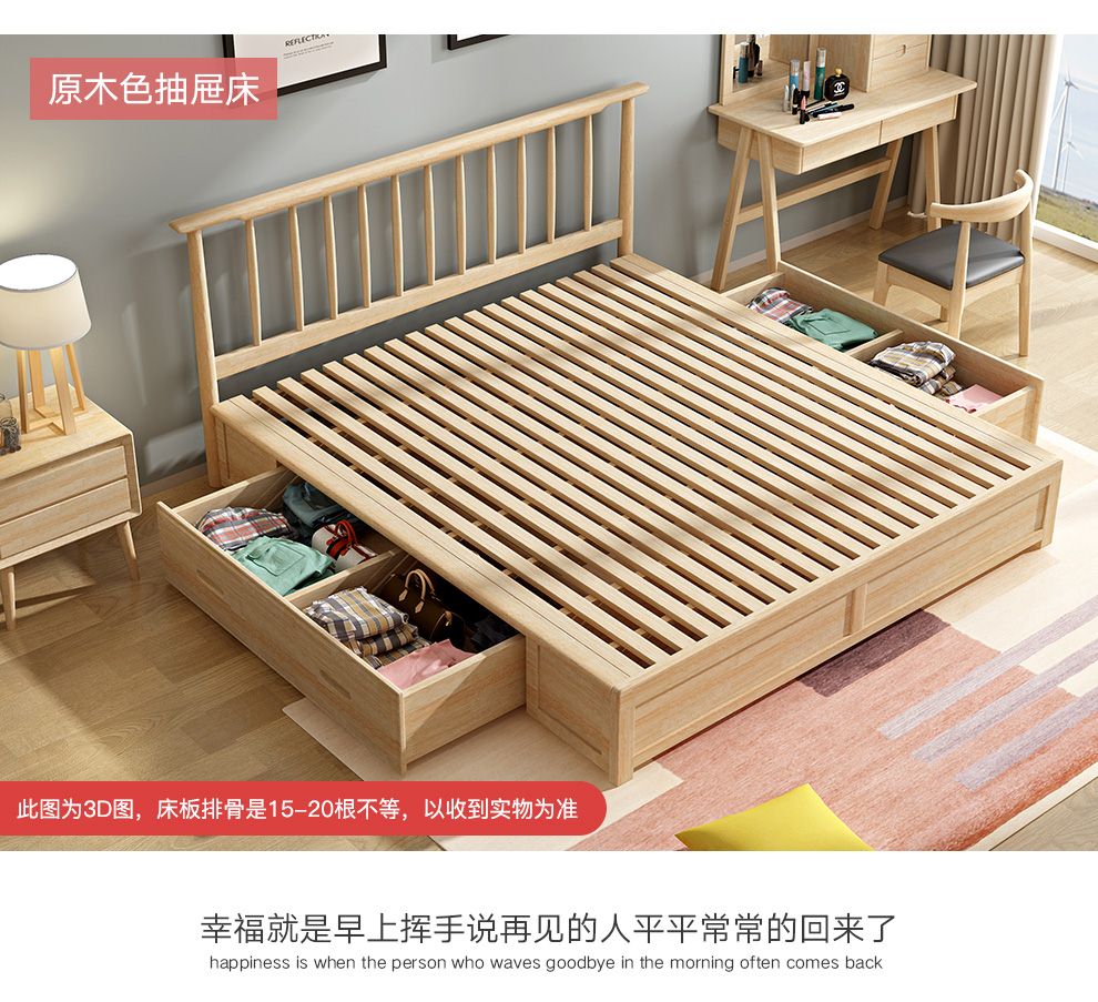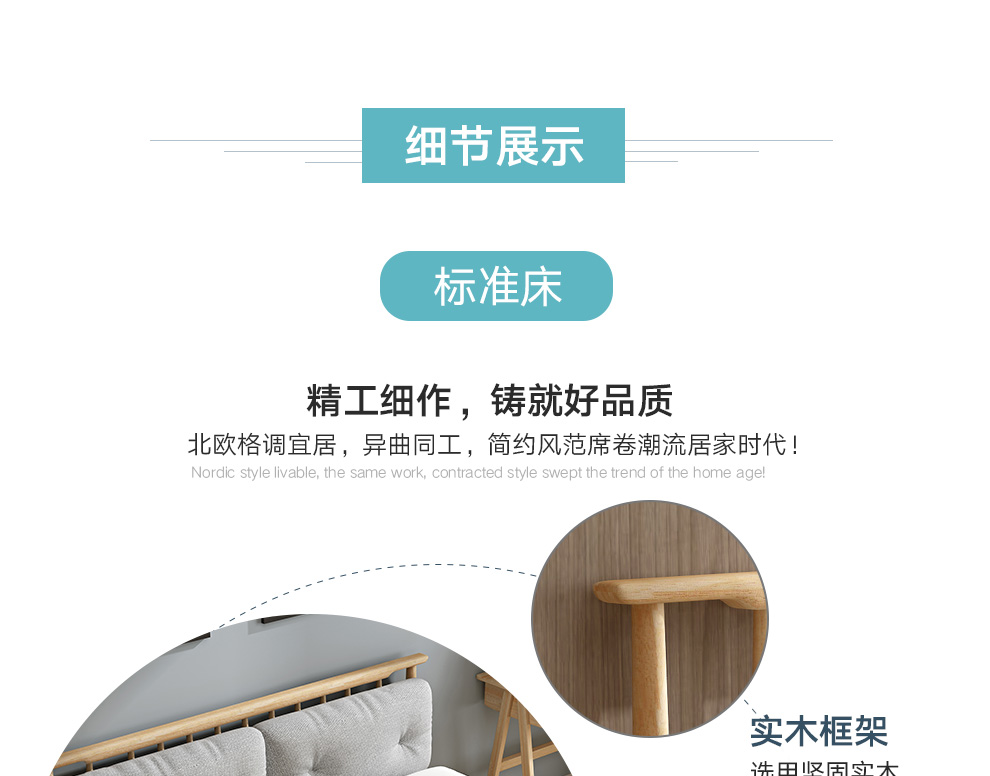 商品名称:锦巢床北欧实木床软靠背婚床1.5米单人床1.8米双人大床高箱储物