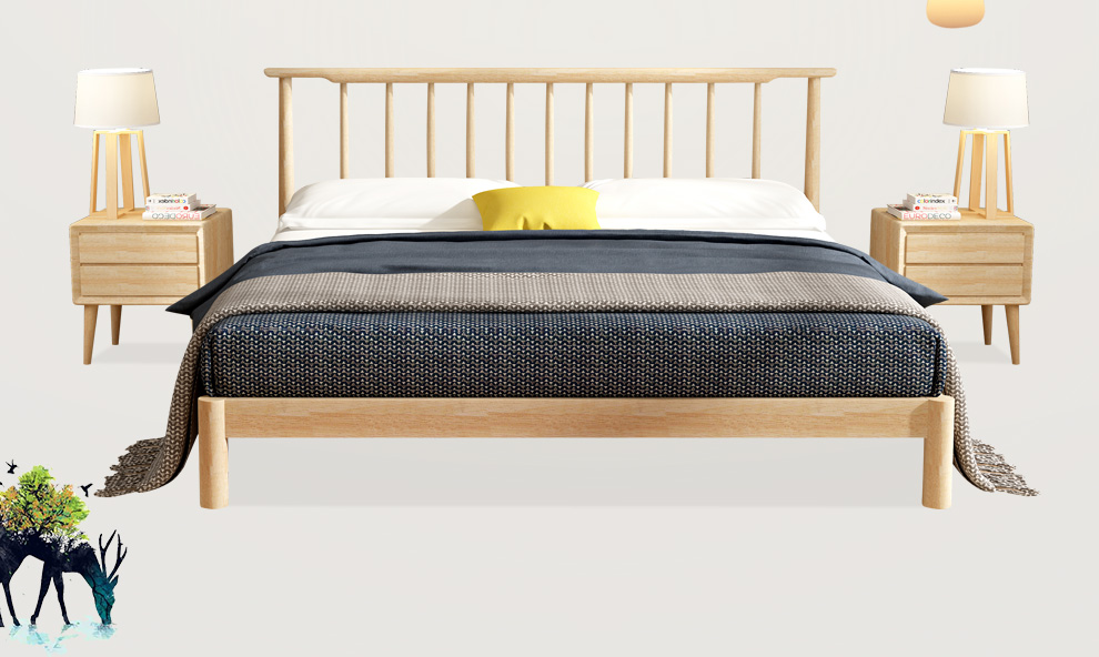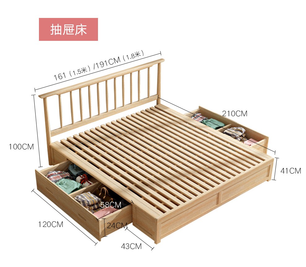 锦巢床北欧实木床软靠背婚床1.5米单人床1.8米双人大床高箱储物