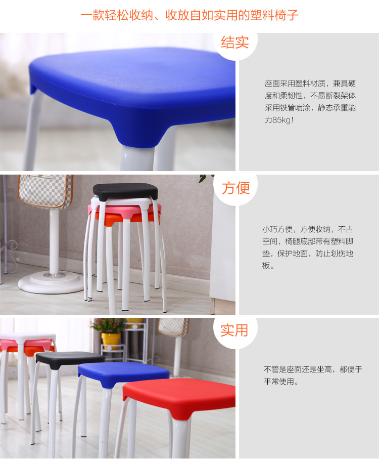 商品名称:华恺之星 凳子椅子休闲时尚彩色换鞋凳加厚塑料凳子矮凳 黑色