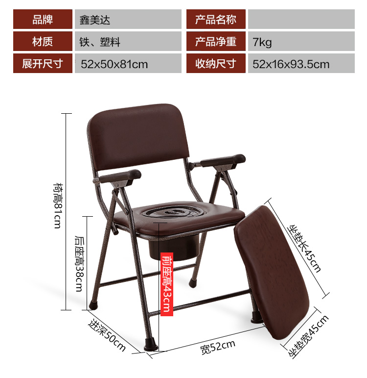 商品名称:鑫美达 坐便椅 坐厕椅老人孕妇可折叠坐便器马桶座便椅厕所坐便