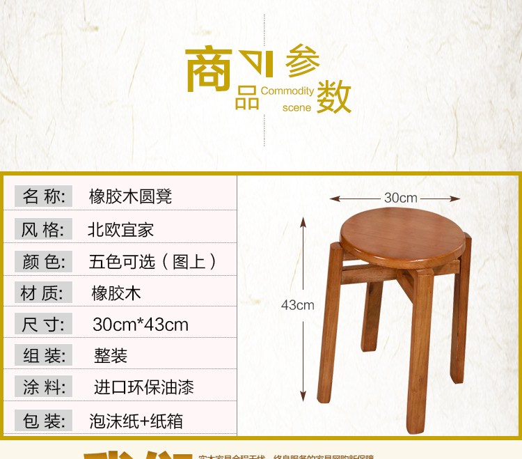 商品名称:实木圆凳子椅子加固橡木凳板凳木制櫈子加高餐桌凳小登子家用餐凳