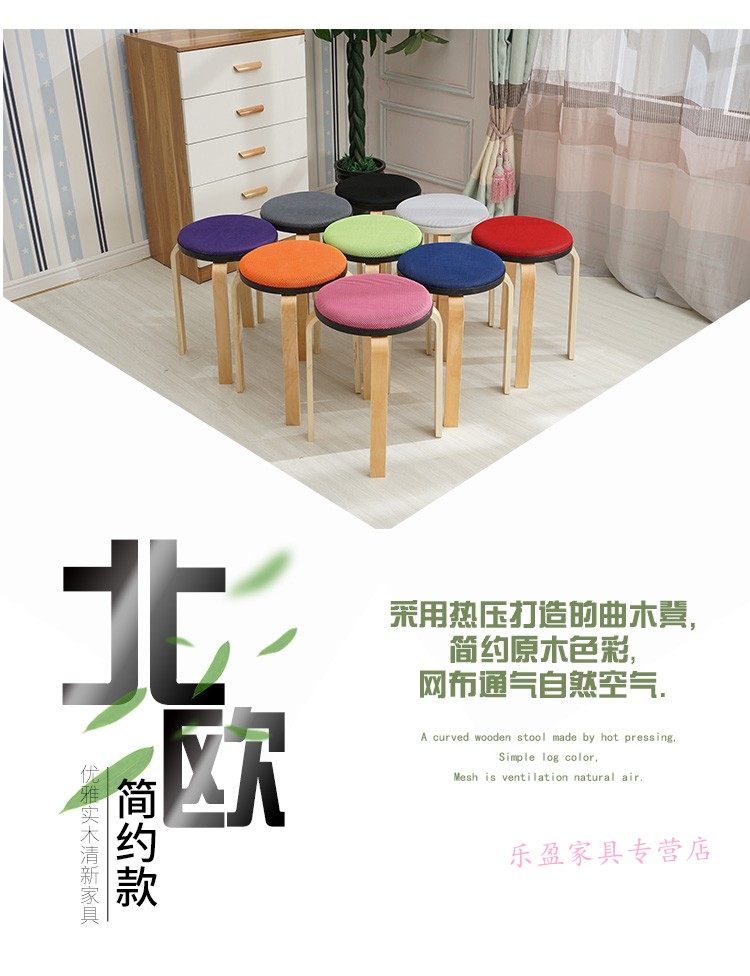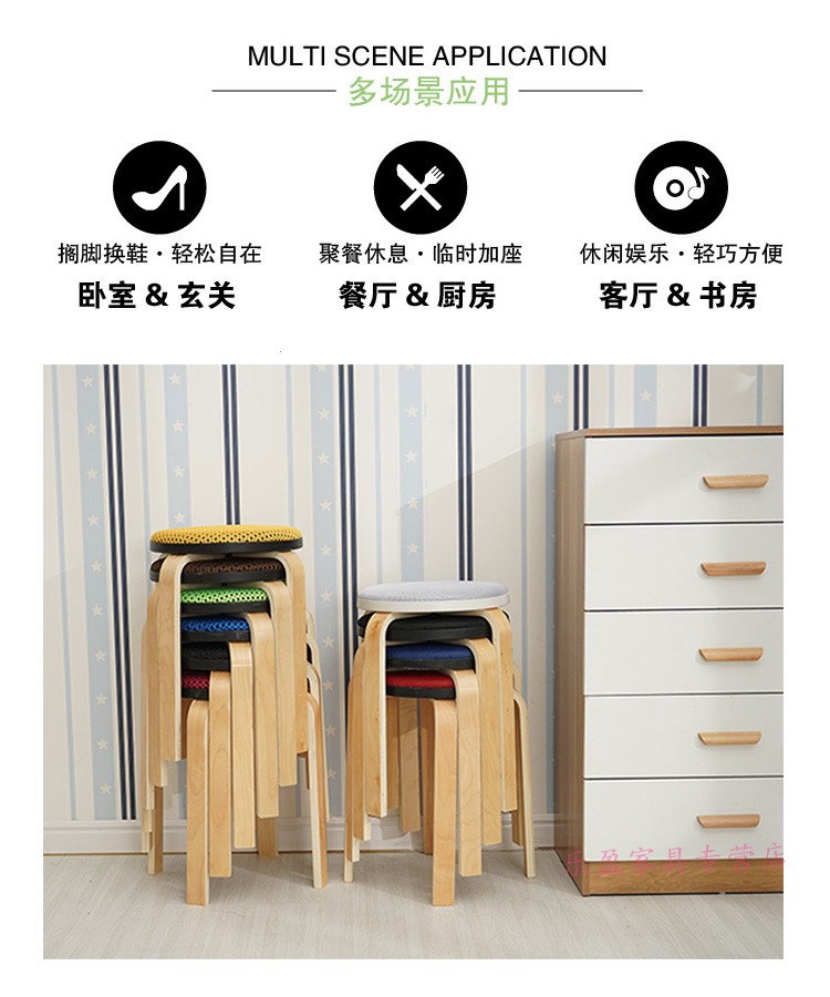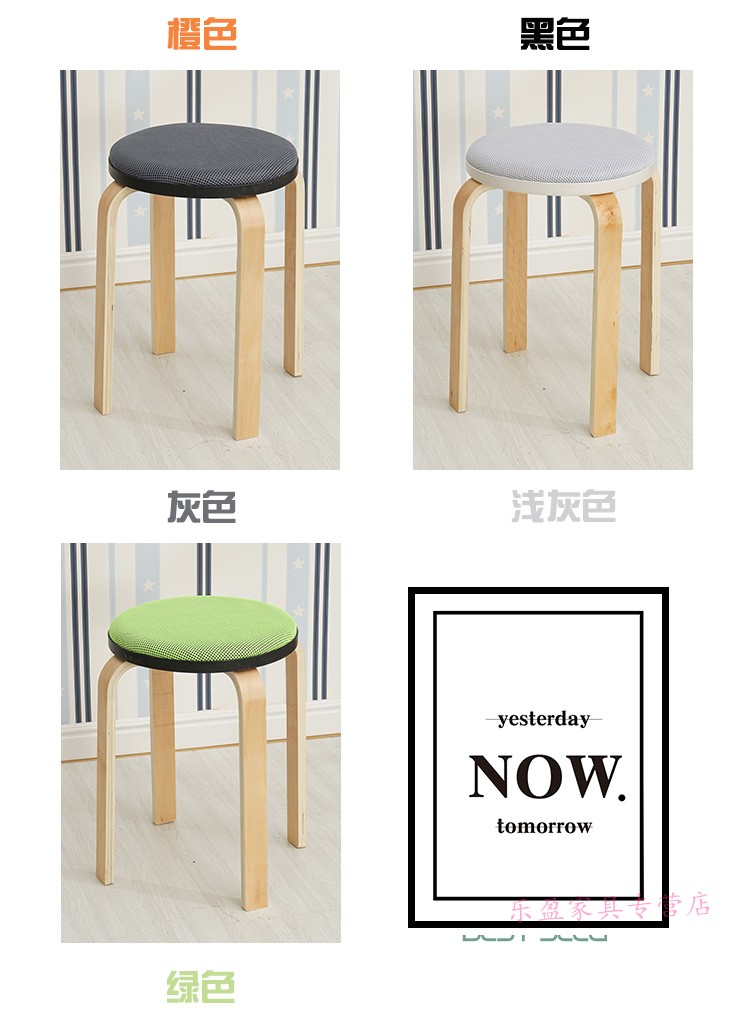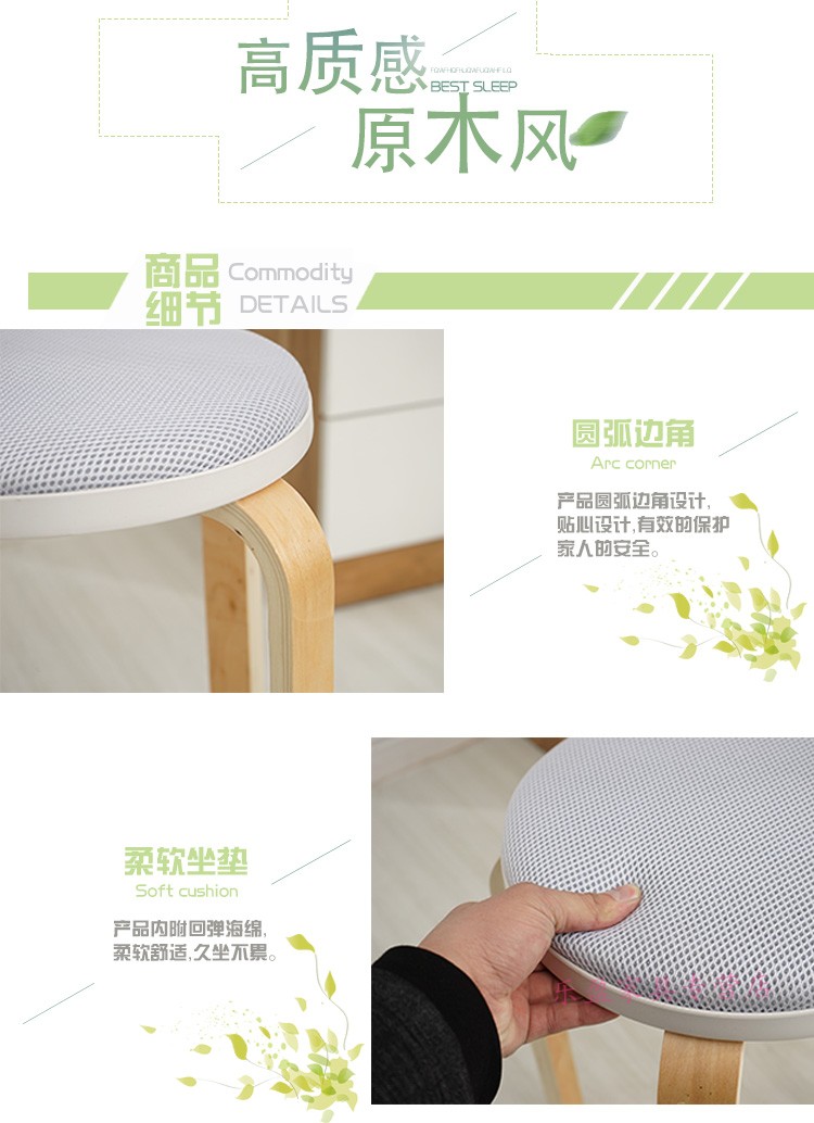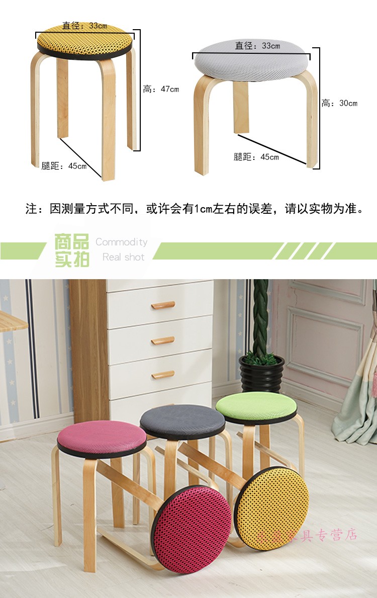 商品名称:木制圆凳子家用板凳软包时尚创意餐桌高凳登子简约现代小椅子荧