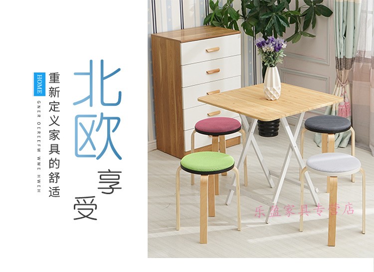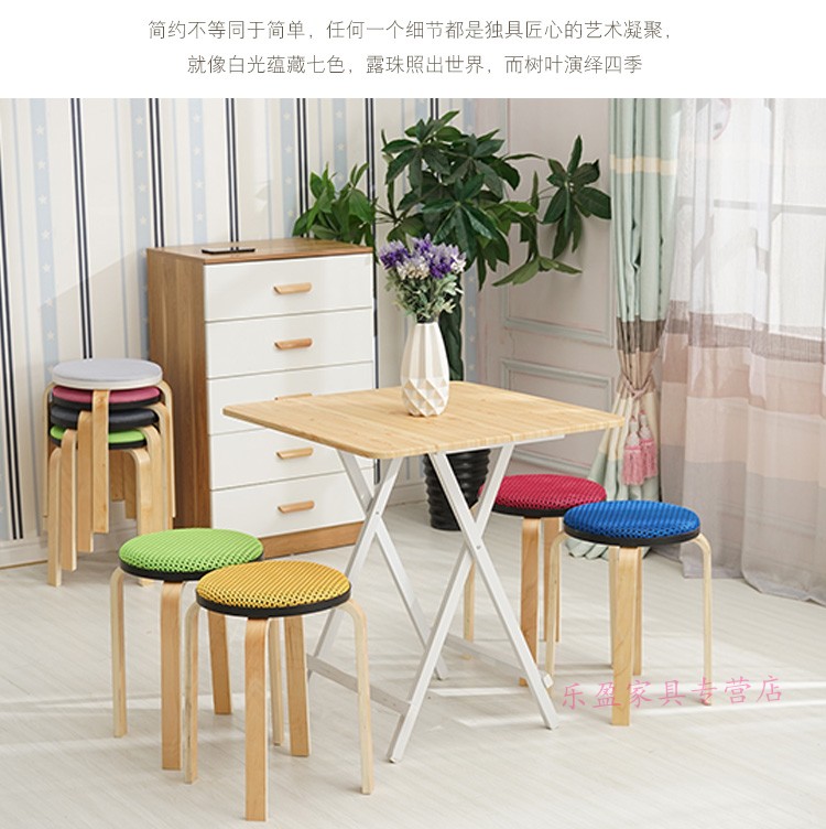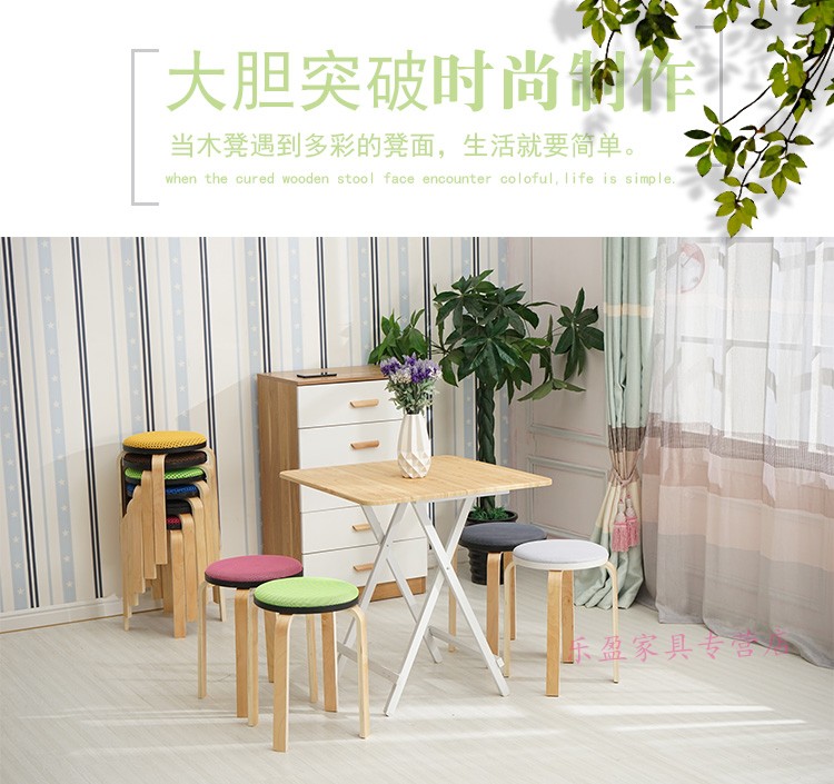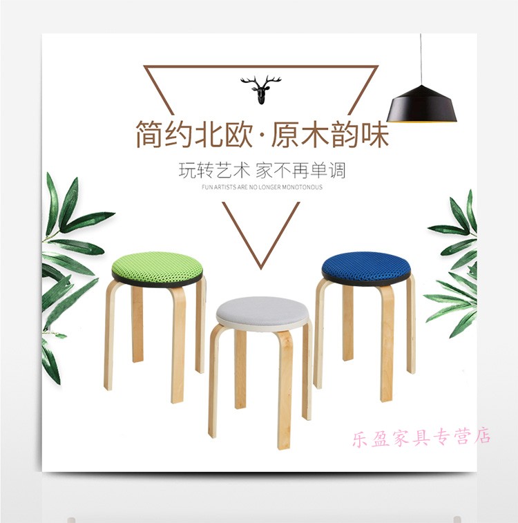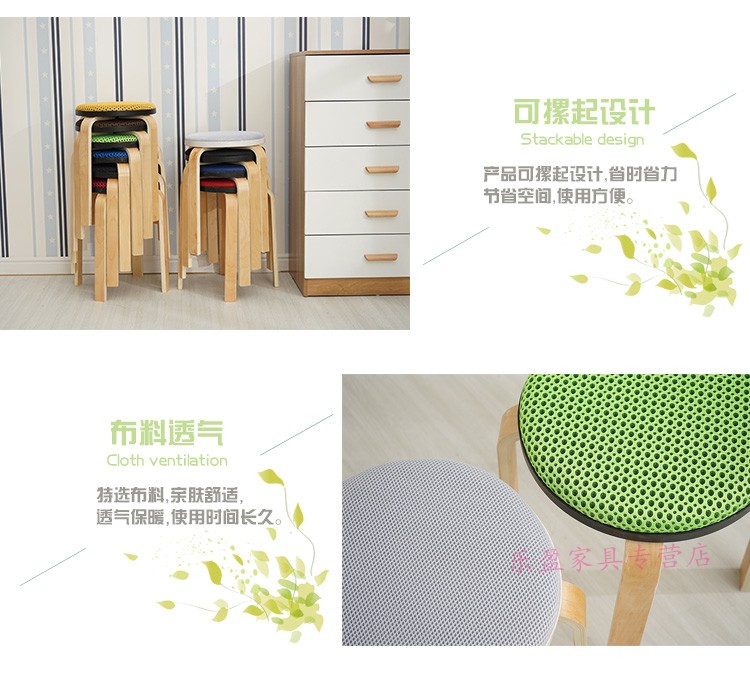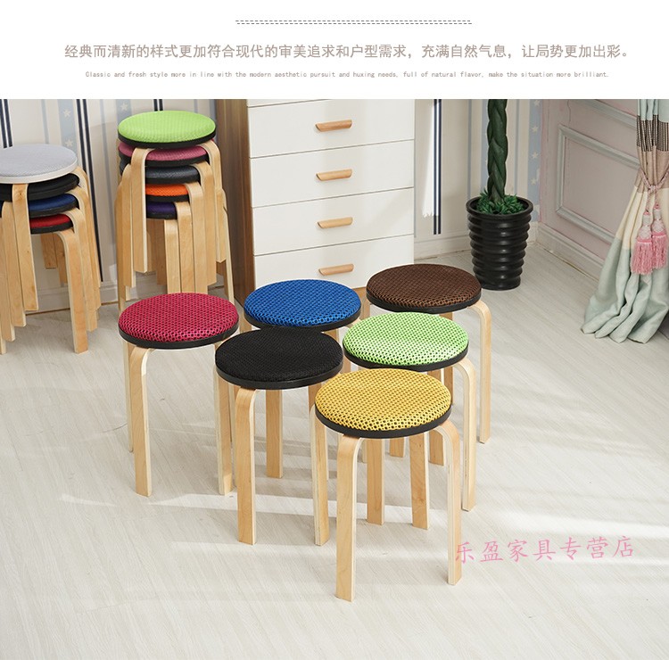 商品名称:木制圆凳子家用板凳软包时尚创意餐桌高凳登子简约现代小椅子荧