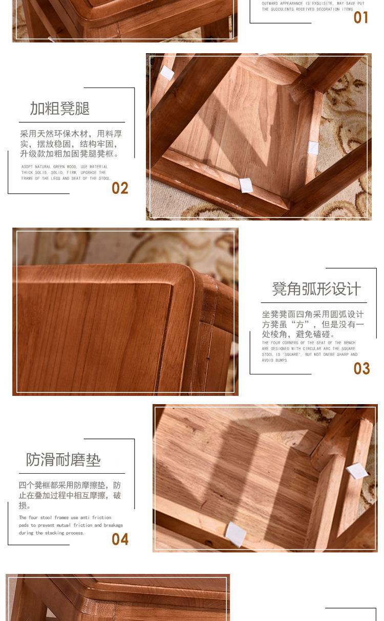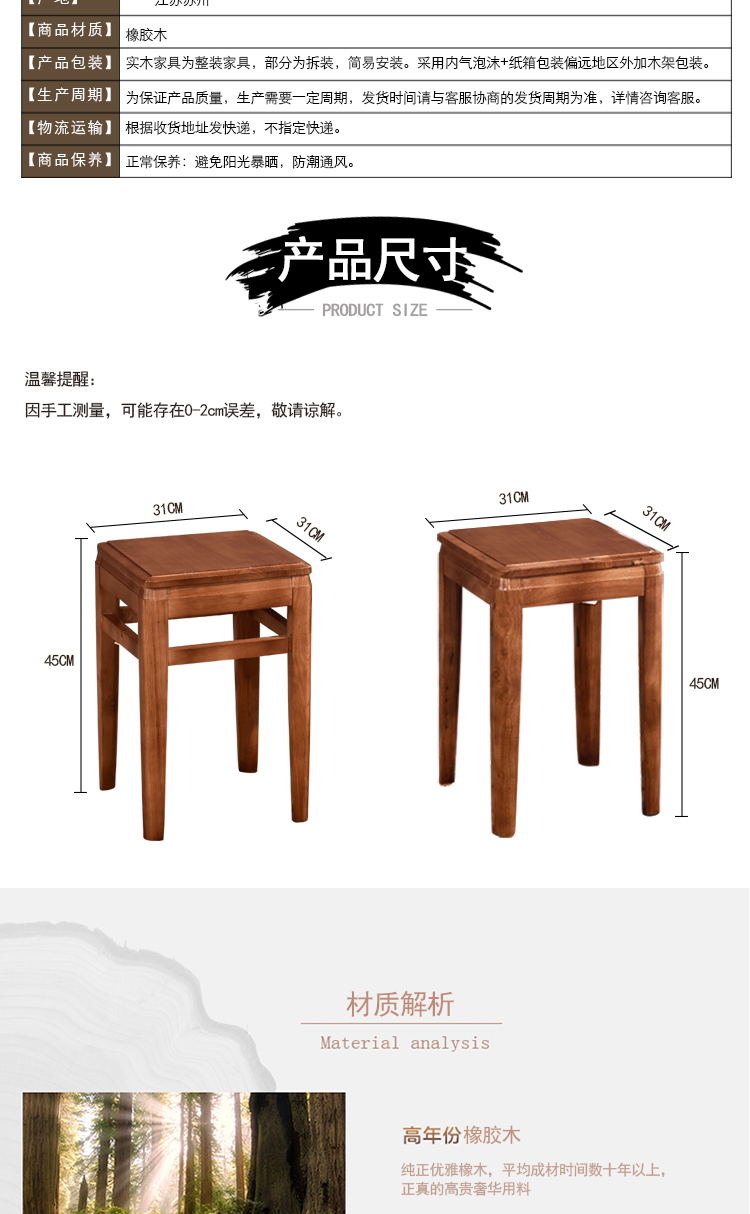 商品名称:实木方凳餐凳家用木制板凳时尚创意中式原木学生休闲简约凳子加