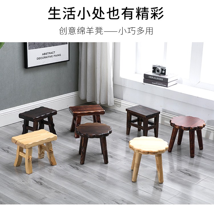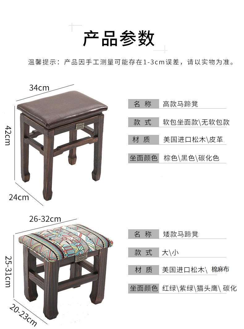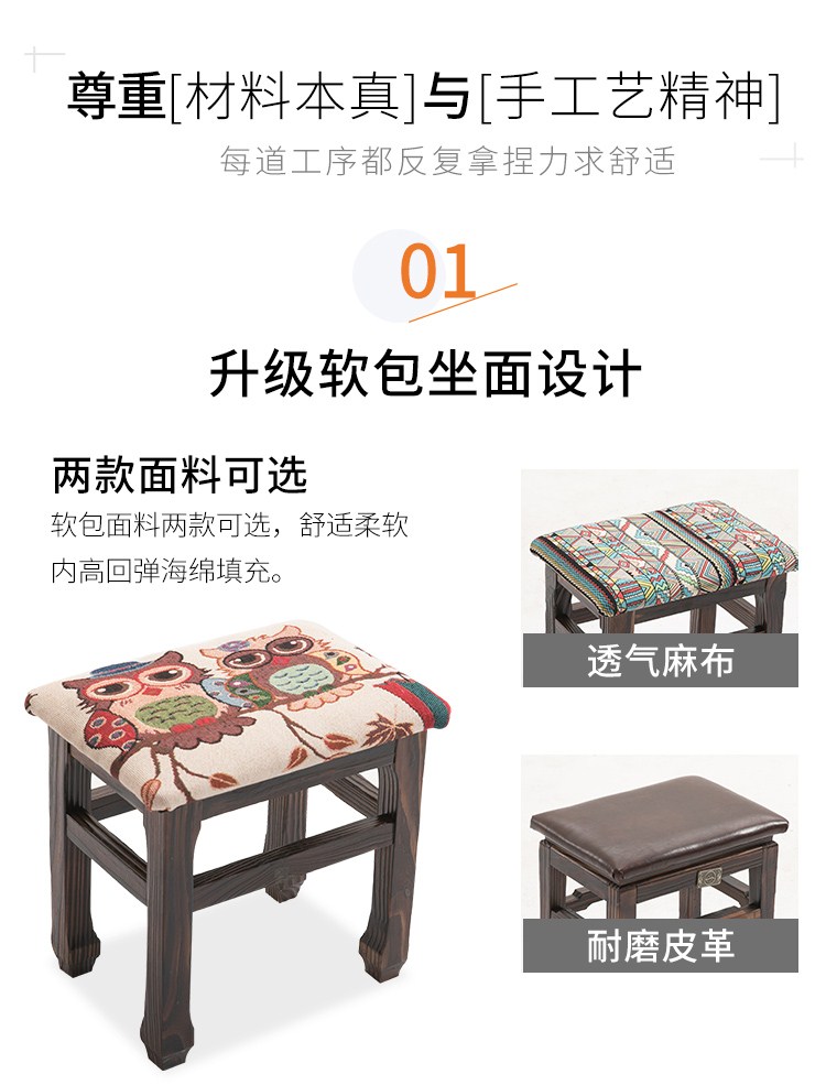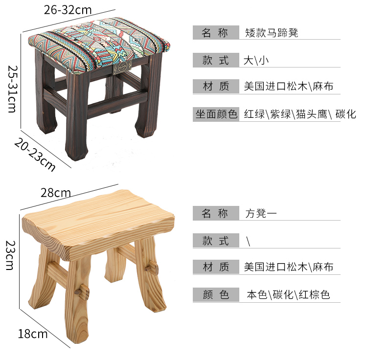 商品名称:小凳子家用木制换鞋凳仿古小方凳实木矮凳子加厚客厅布艺板凳HL1