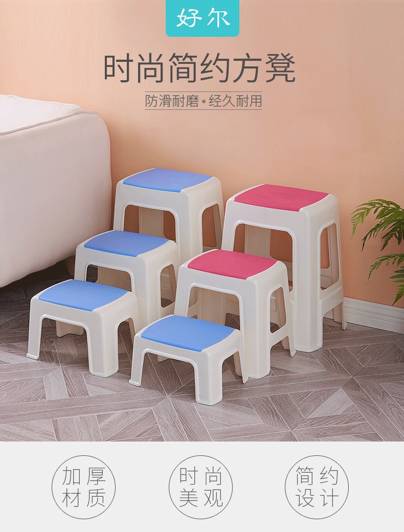 商品名称:好尔(Hore)凳子 板凳 小凳子 塑料凳子中号蓝色 1个装